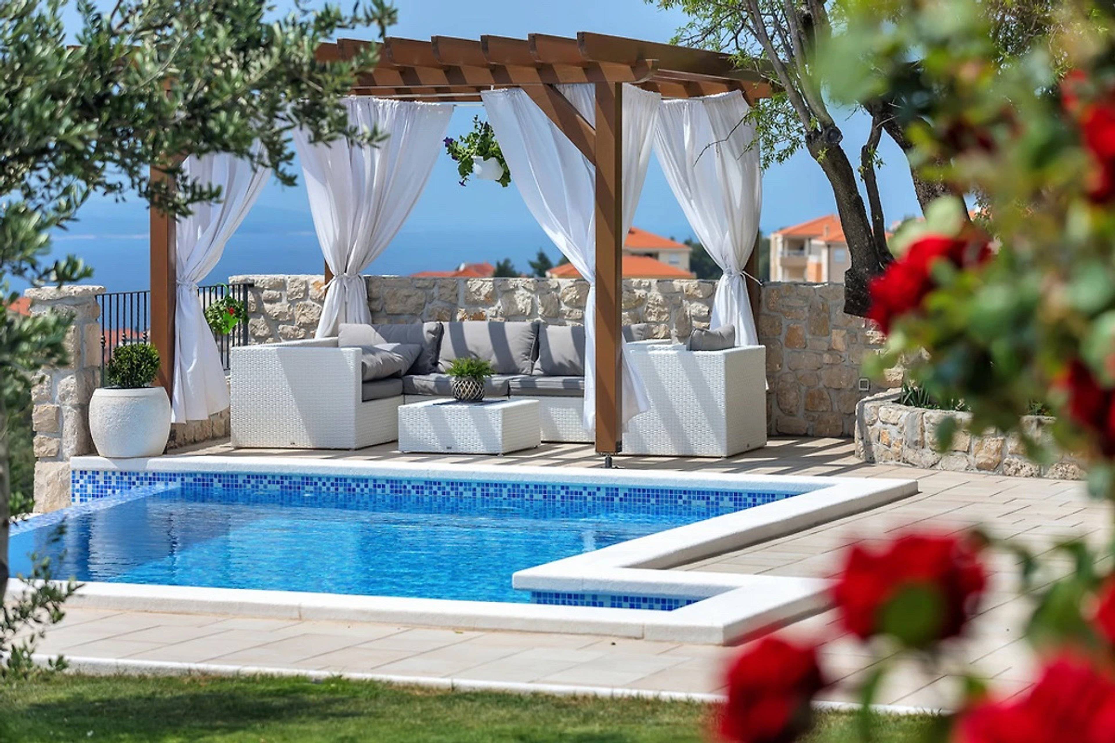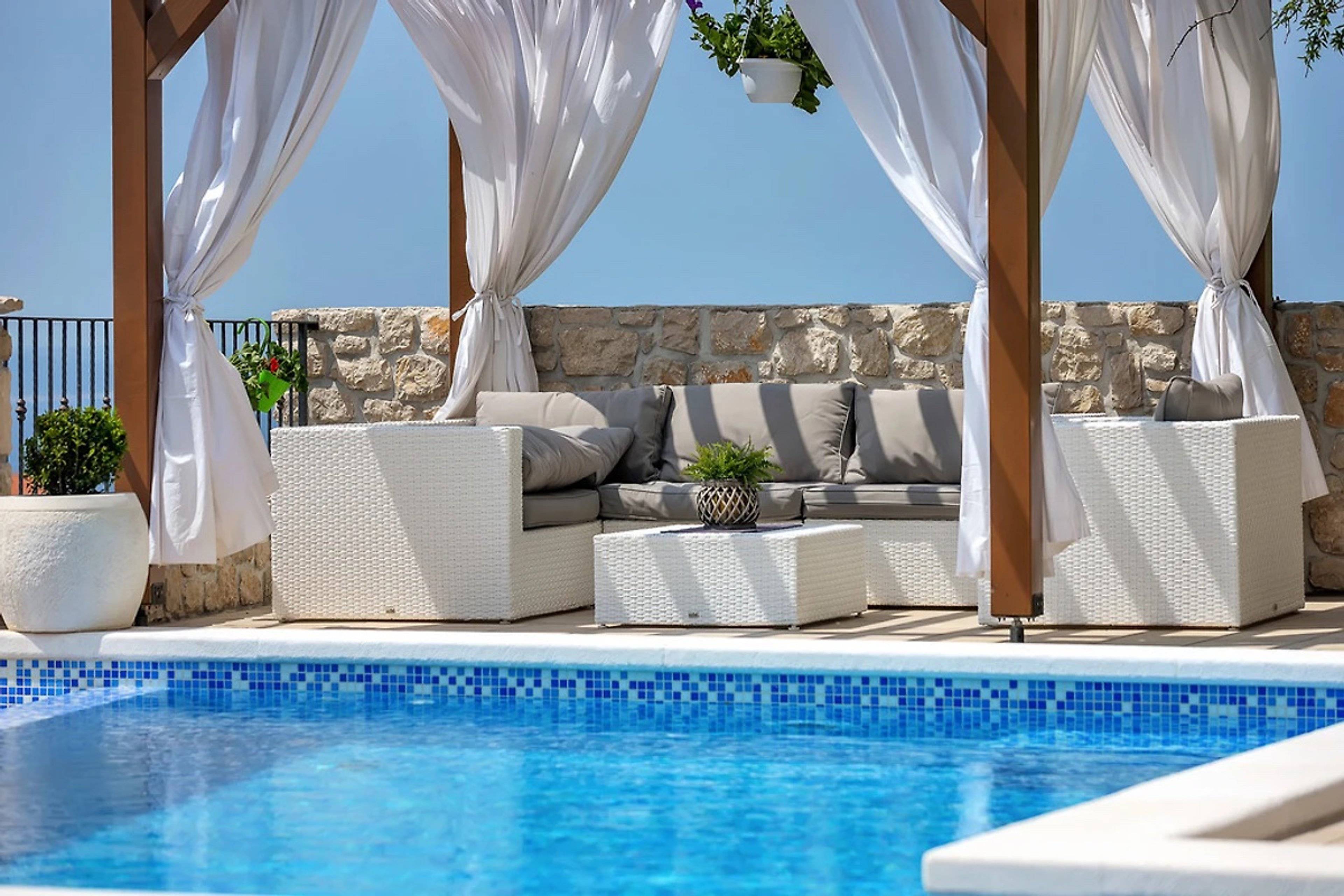 Durch den beheizbaren Pool ist dieses Ferienhaus ideal für alle Gäste, die gerne schon im Frühling oder erst im Herbst Urlaub in Dalmatien machen wollen und lieber in einem vorgewärmten Pool baden – sehr geeignet auch für kleine Kinder.