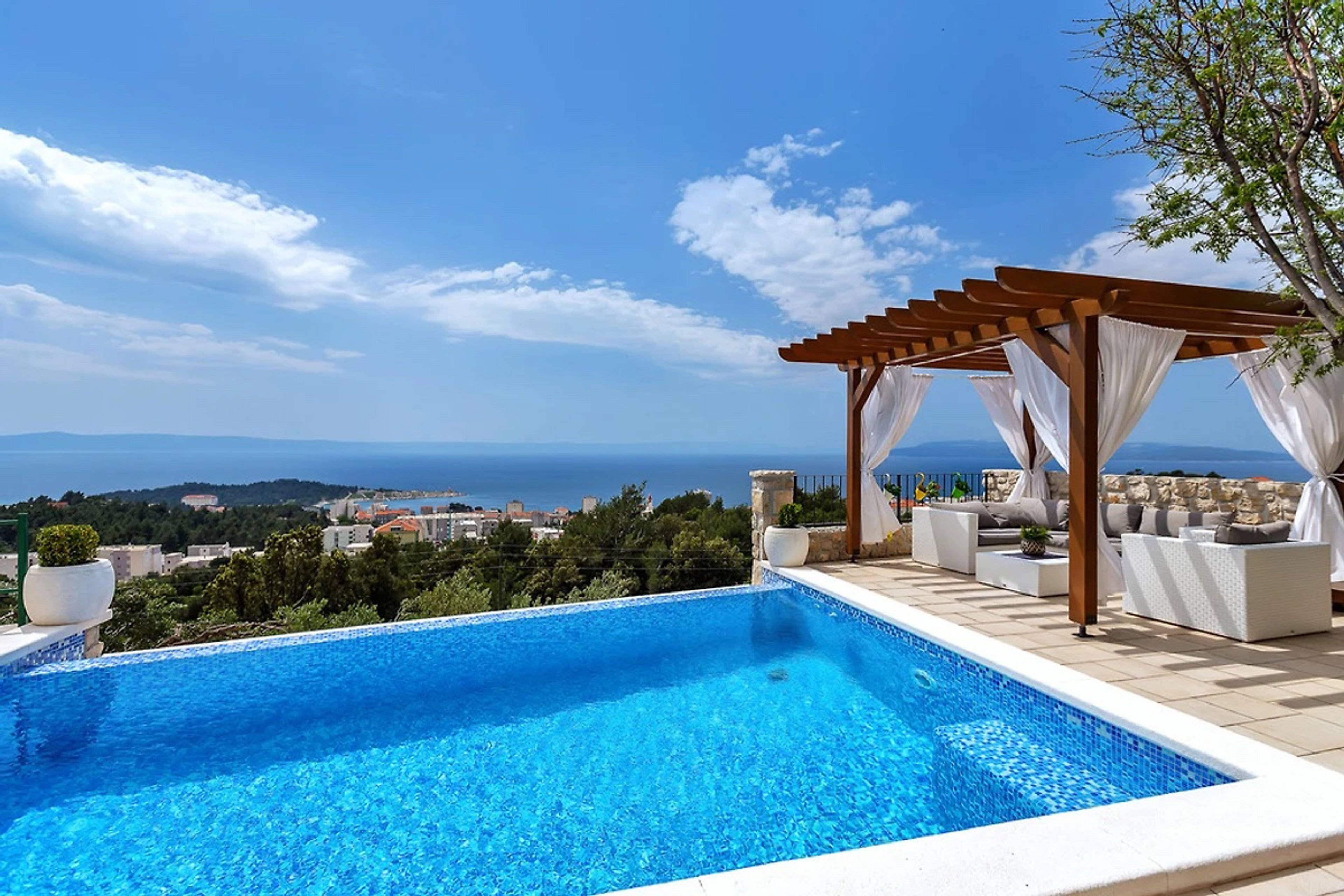 Alleinstehendes Ferienhaus mit beheiztem infinity Pool und Meerblick oberhalb der Stadt Makarska.Ideal für Familienurlaub und Naturfreunde.