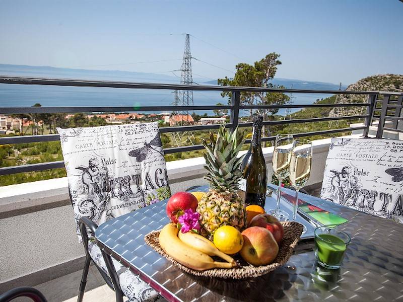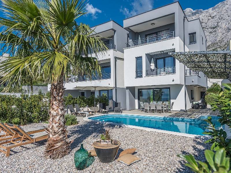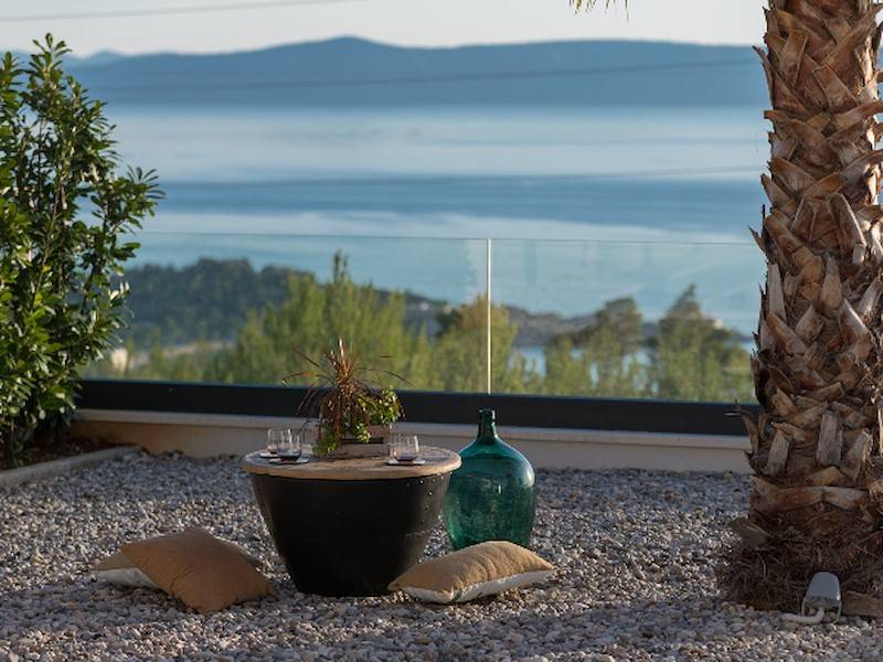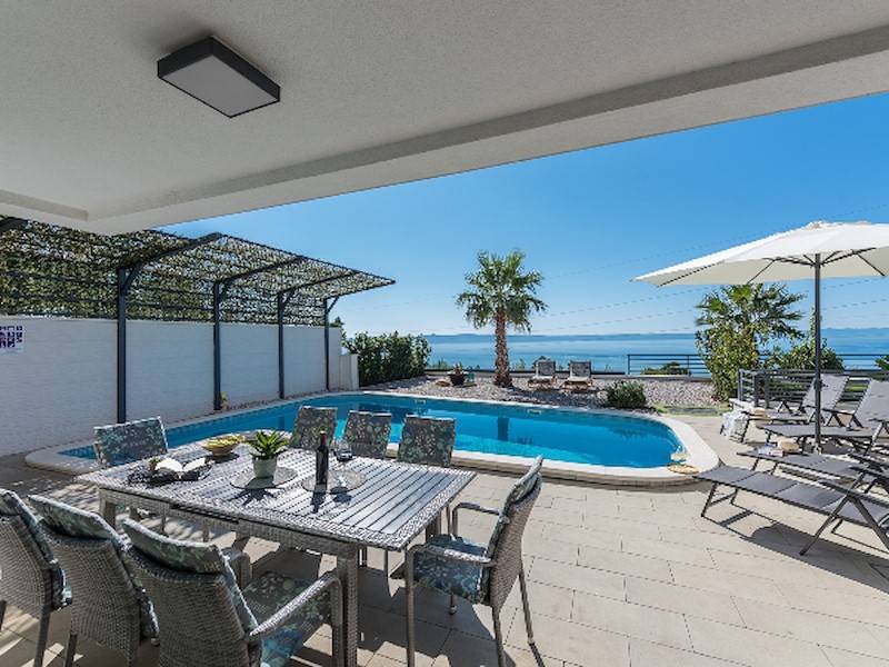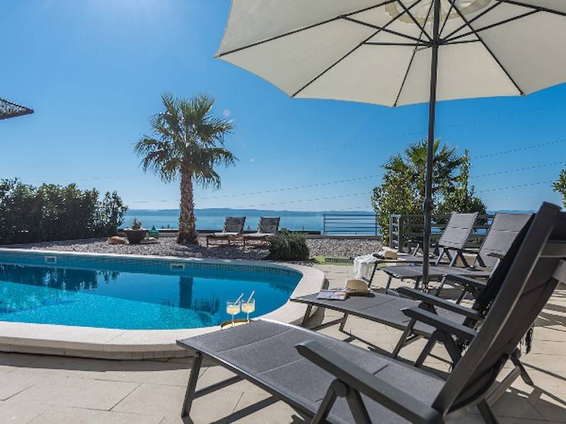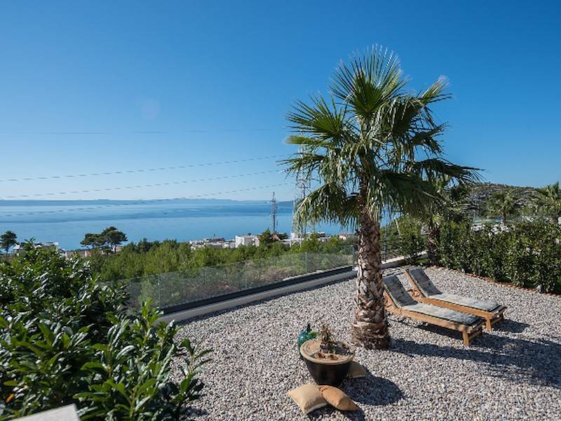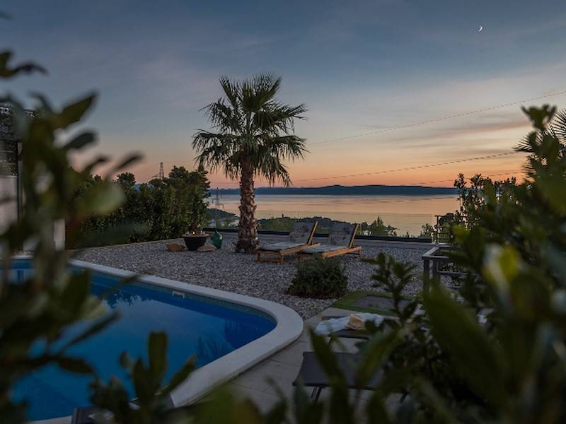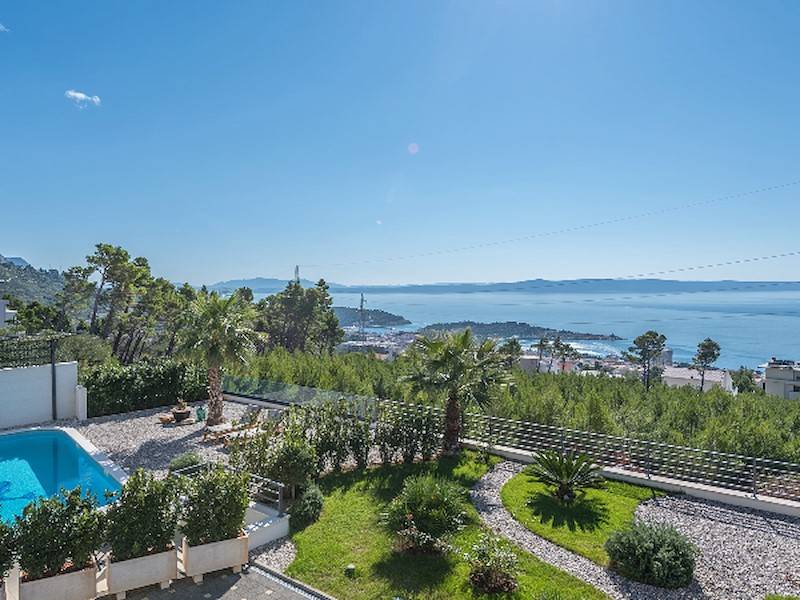 Schöne Villa mit Pool,Terrasse und Meerblick oberhalb der Stadt Makarska mit fünf Schlafzimmern. Dazu Sauna, Fitnessraum, ideal für zwei Familien.