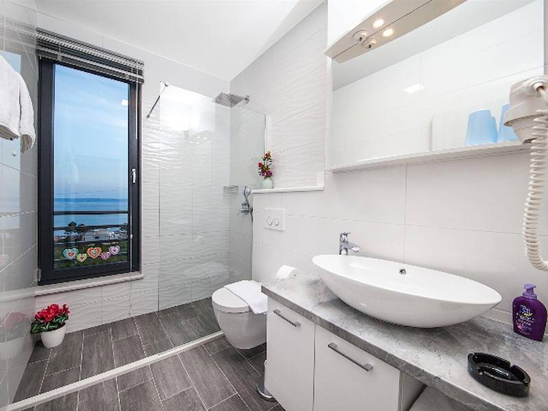 Im 1. Stock stehen drei Schlafzimmer. Alle Zimmer sind klimatisiert mit SMART SAT-TV, WiFi, Safe, Badezimmer, Dusche und Haartrockner ausgestattet. Zwei von drei Zimmern, haben einen Balkon mit Meerblick.
