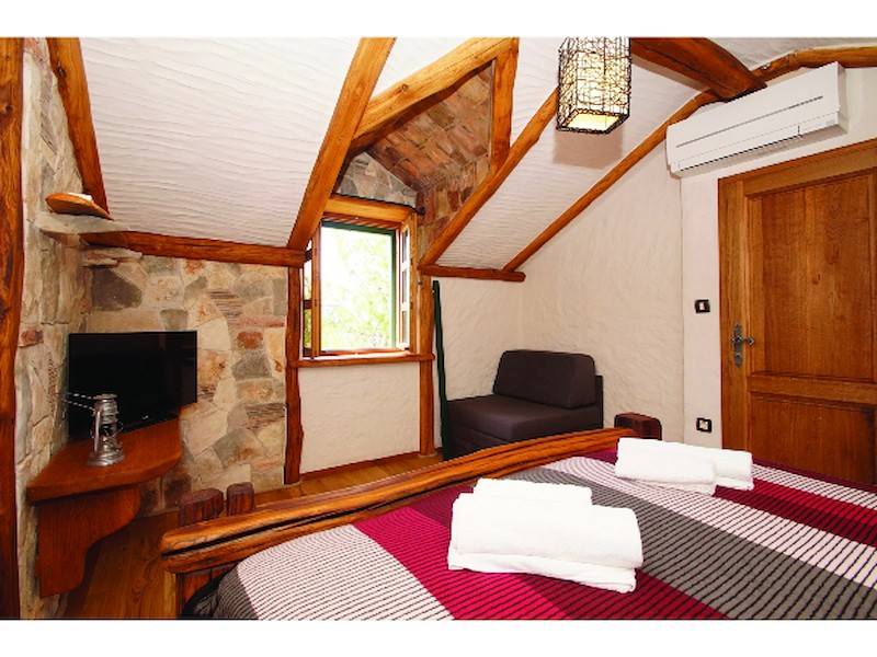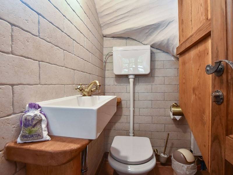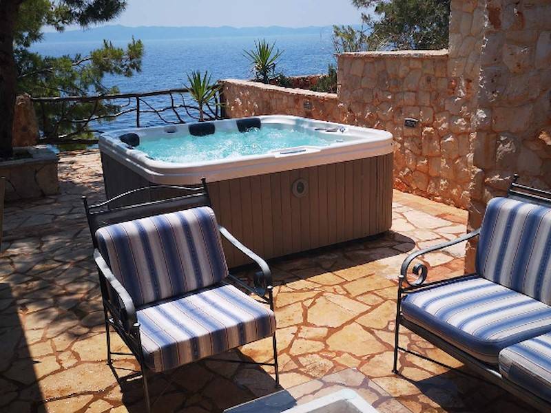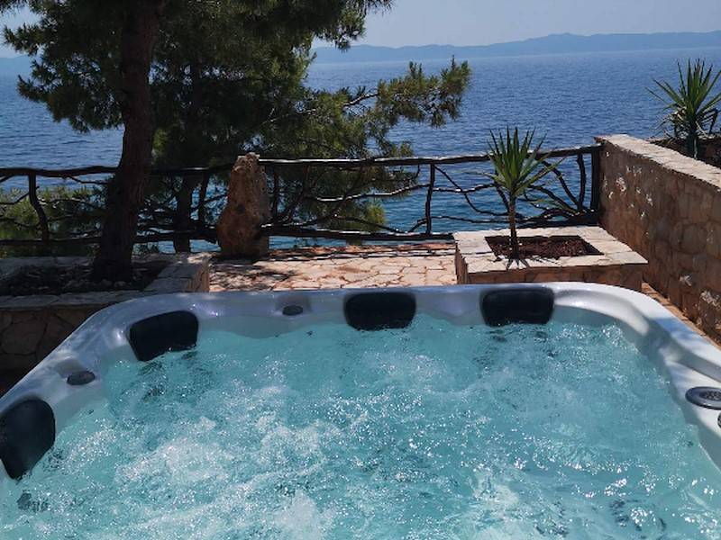 Auf der Terrasse finden Sie die überdachte Terrasse mit Grillstelle und Gartenmöbel, wo Sie angenehme Momente mit Ihrer Familie und Ihren Freunden verbringen können. Ein Whirlpool mit Meerblick ist auch da. Nur ein paar Stufen führen Sie zum Kiesstrand, wo Sie ein 5 PS Motorboot finden, das zu Ihrer Verfügung steht und im Preis inbegriffen ist. Das Objekt ist über eine steile, kurvenreiche, nicht asphaltierte Straße mit einer Länge von 3,5 km erreichbar, aber es wird keine Schäden an Ihrem Auto verursachen, da ein Jeep Geländewagen Ihnen ebenfalls zur Verfügung steht und im Preis inbegriffen ist.