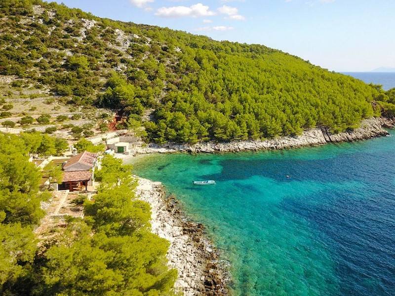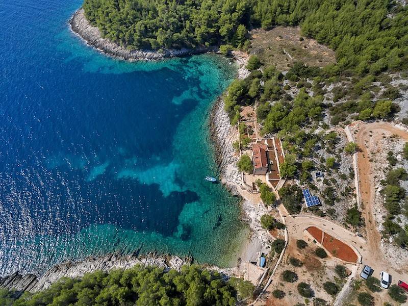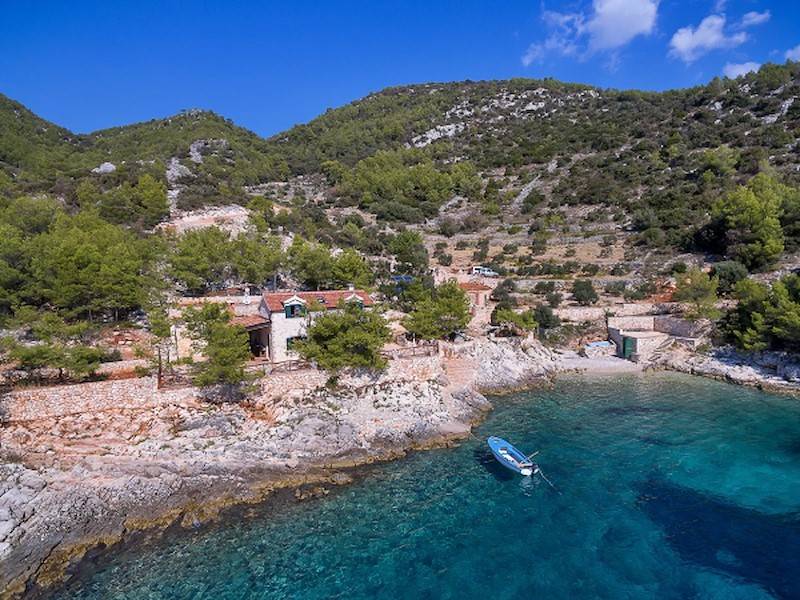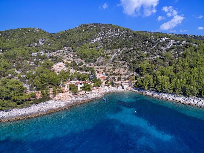 Alleinstehendes Ferienhaus in eigener Bucht auf 130.000 qm privat Grundstück, direkt am Meer und Strand auf der Insel Hvar. Gratis Jeep Geländewagen!