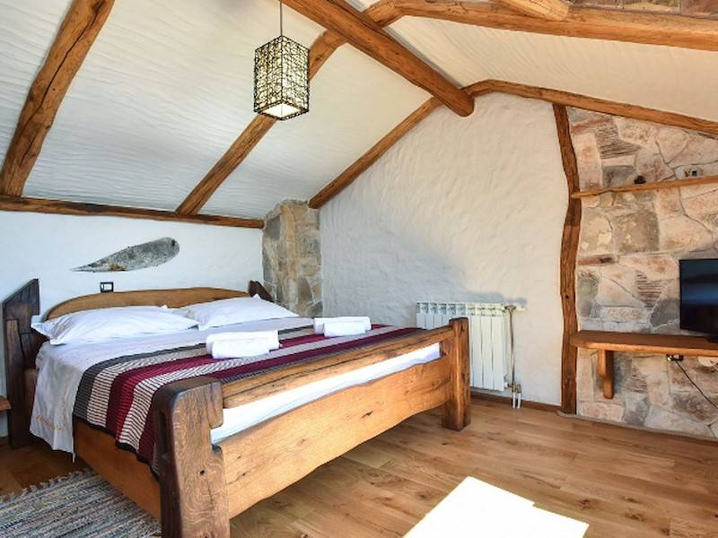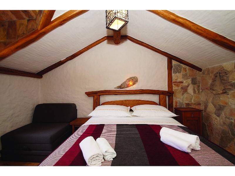 Das Ferienhaus besteht aus zwei Schlafzimmern, die jeweils mit einem Doppelbett und einem Zusatzbett ausgestattet sind, eine komplett ausgestatteten Küche, das Wohnzimmer mit Kamin, einem Badezimmer und ein Gäste WC. Die Inneneinrichtung ist mit viel Liebe zum Detail mit viel natürlichen Materialien dekoriert und schafft eine einladende und warme Atmosphäre. Die Räumigkeiten sind gemütlich ausgestattet für Ihren vollen Genuss und Entspannung, um den Luxus des modernen Lebens abseits der Massen zu entfliehen.Die Stromversorgung des Ferienhauses erfolgt über Solaranlagen und Stromaggregate, der Einsatz von Hochleistungsgeräten ist jedoch begrenzt.