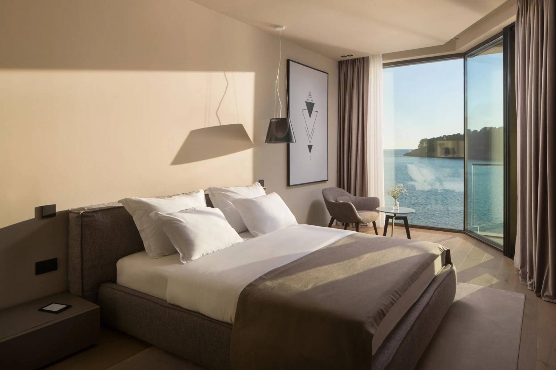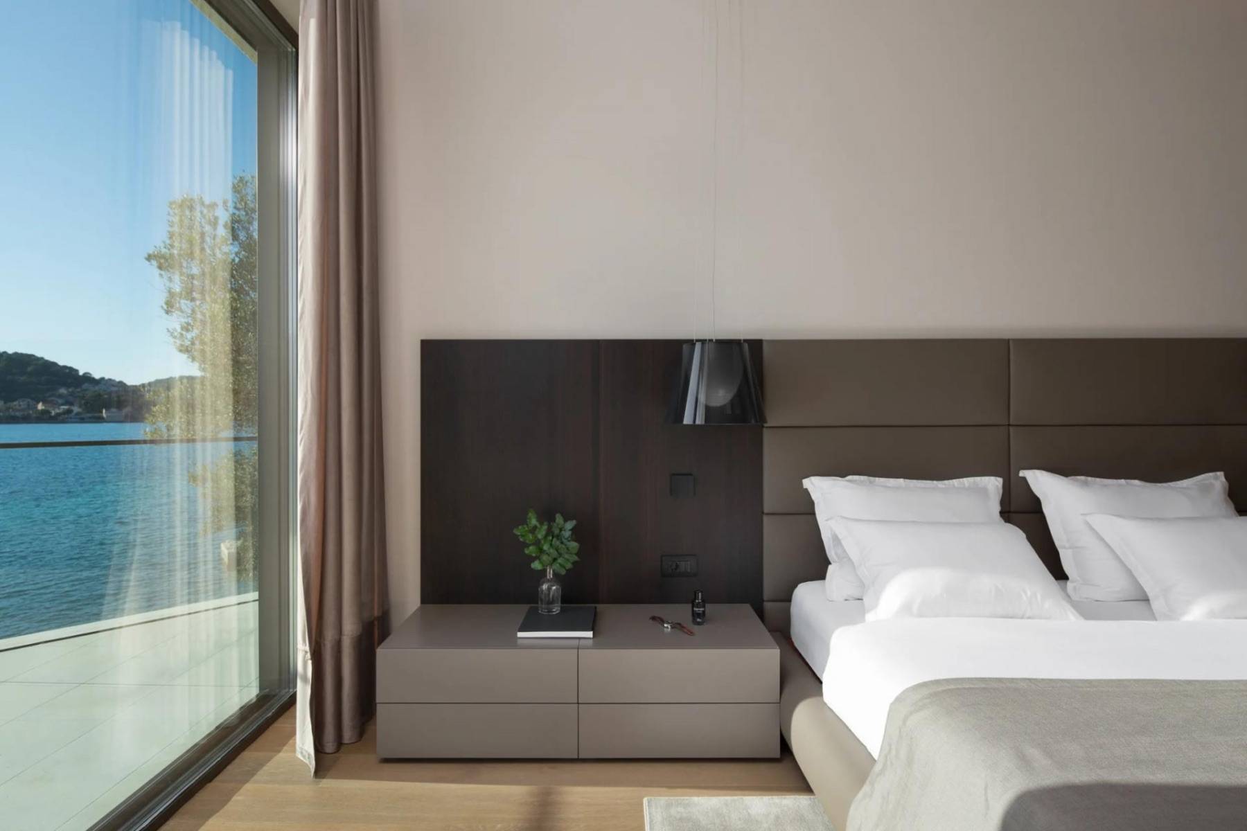 Das Interior ist schlicht, modern und in erdfarben gestaltet. Ein Ambiente, in dem man sich vom ersten Augenblick an wohlfühlt und es von Anfang an bereut, den Aufenthalt nicht verlängert zu haben. Das ansprechende Interior wird lediglich durch den Blick auf das Meer übertroffen. Oder umgekehrt.