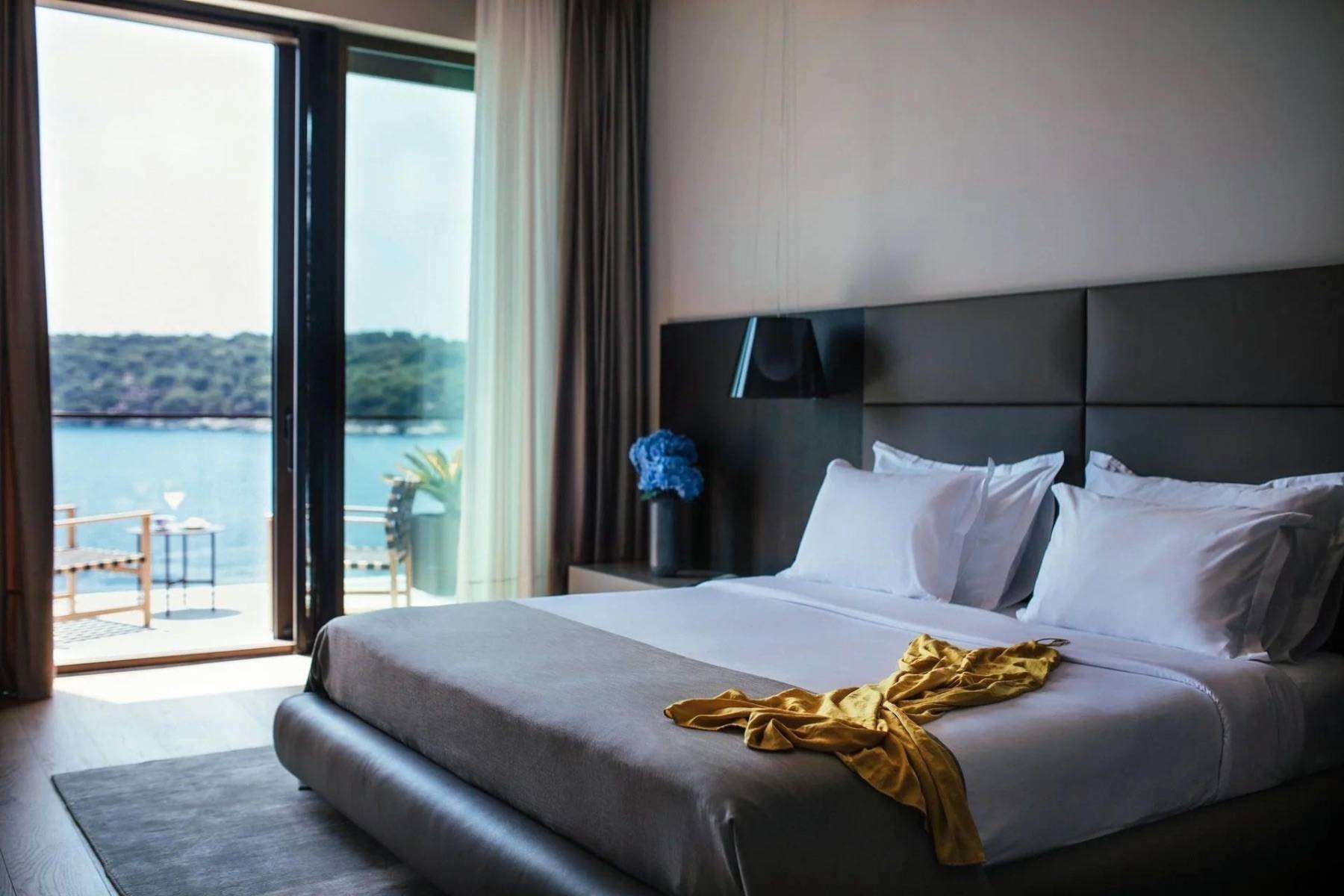 Alle Schlafzimmer (von denen eines mit zwei Einzelbetten ausgestattet sind) sind ebenso modern und schlicht eingerichtet und verfügen über einen verträumten Meerblick. Zu jedem der fünf Schlafzimmer gehört ein eigenes Badezimmer, deren Gestaltung ebenso begeistern. Begeistert werden Sie auch sein, wenn Sie sich in die Sauna begeben und während des Schwitzens auf das Meer blicken können.