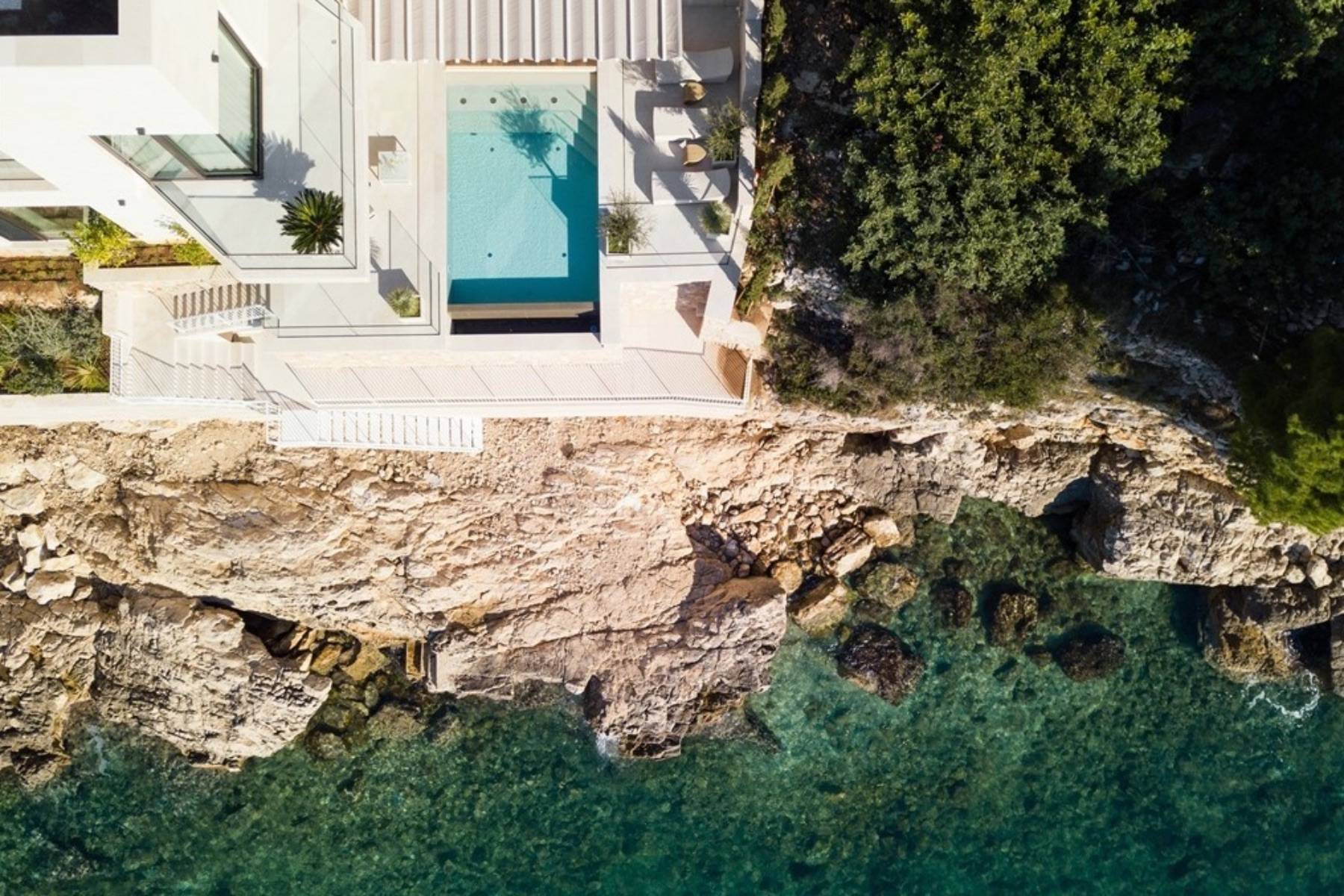 Wer lieber im offenen Meer schwimmt, erreicht dieses vom Grundstück über eine Treppe und kann direkt ins kristallklare Wasser springen.