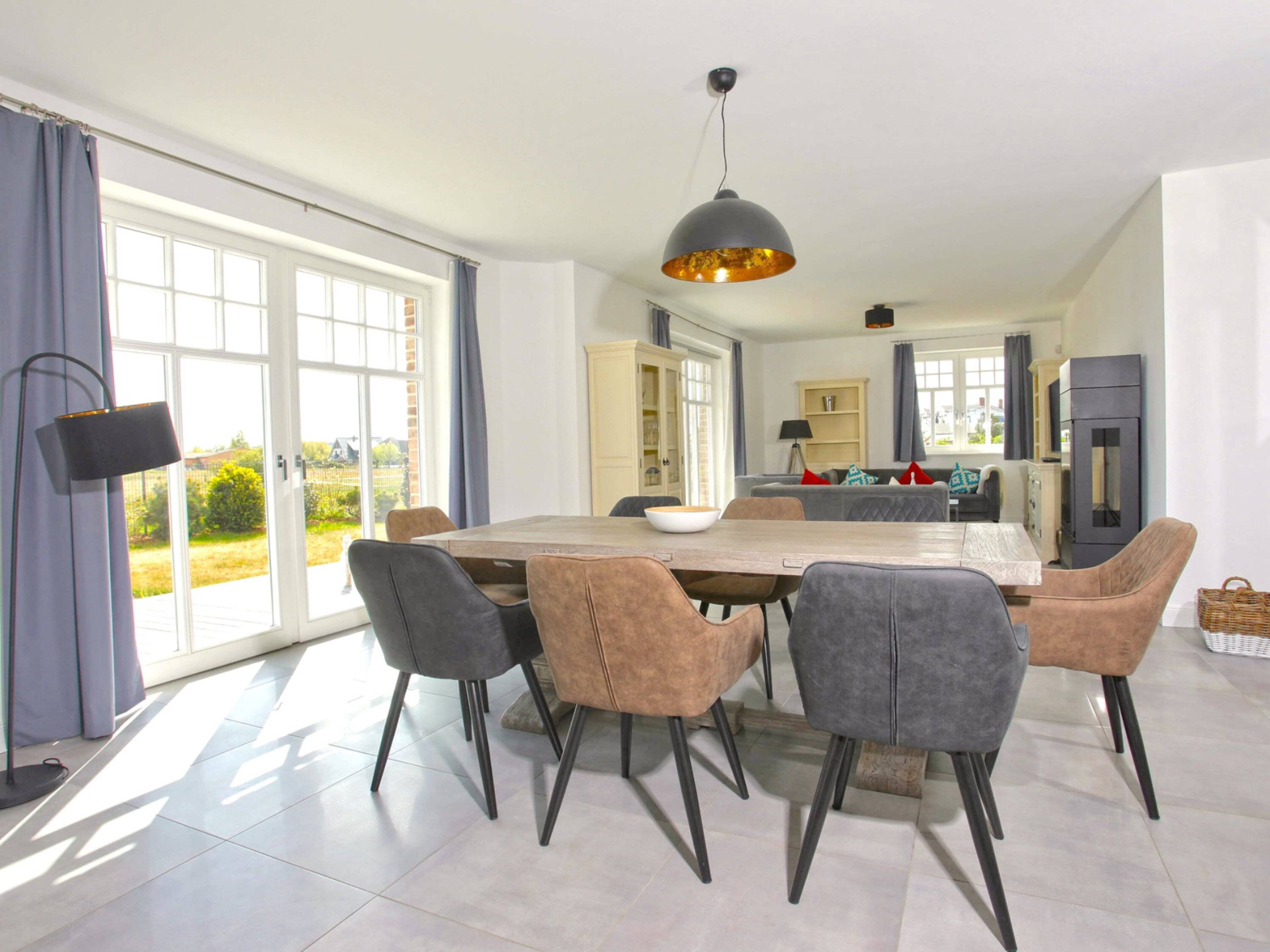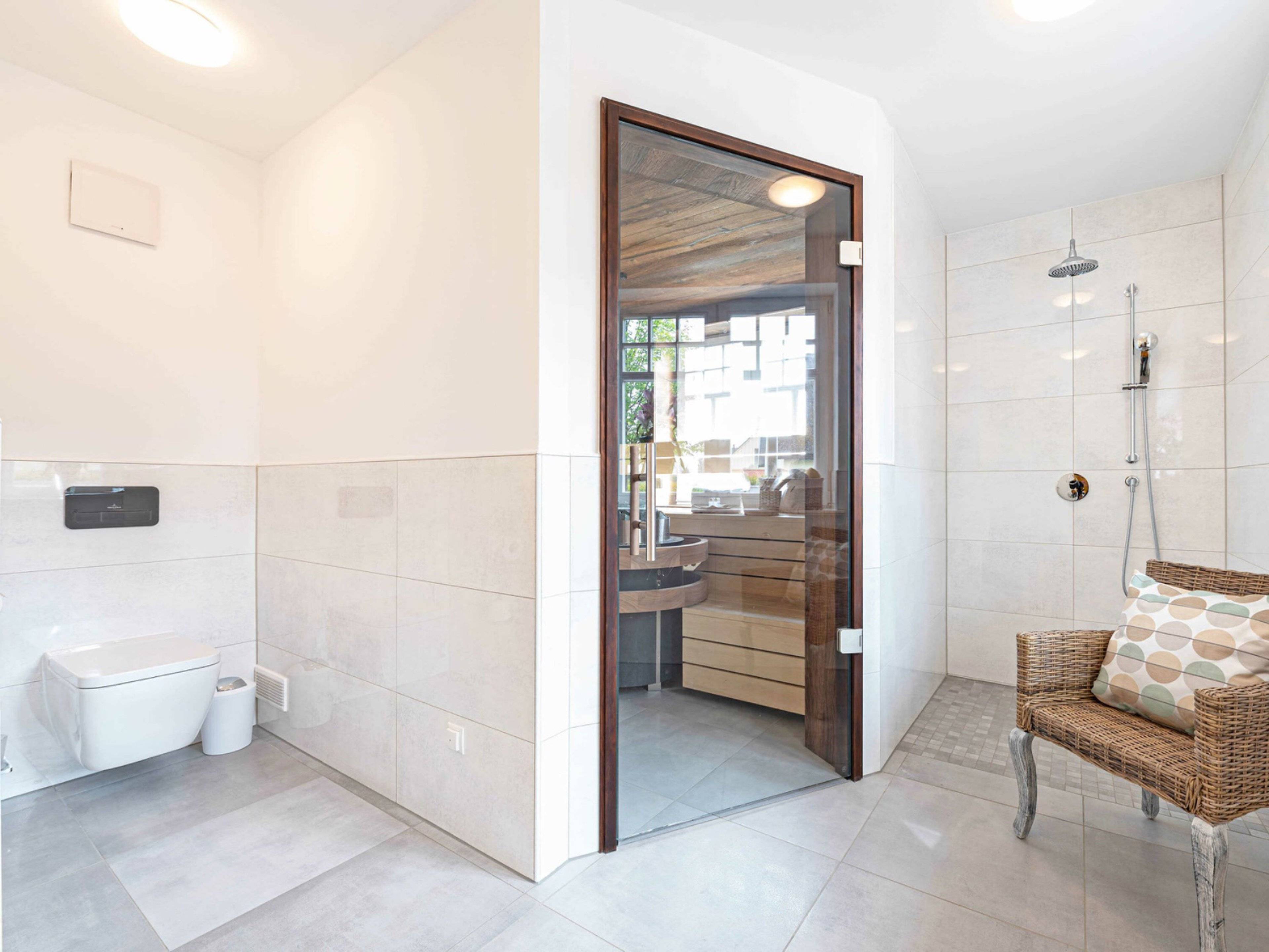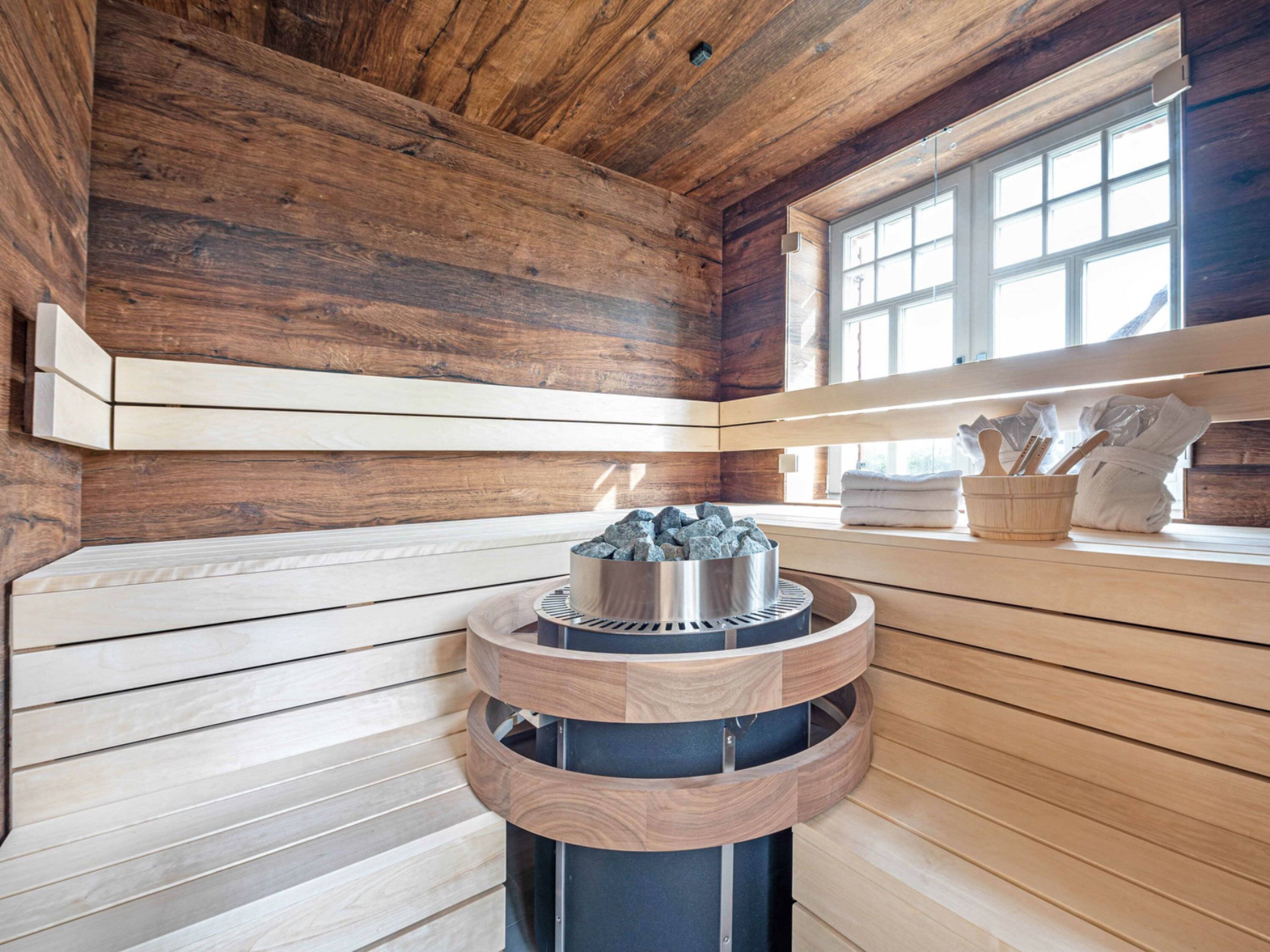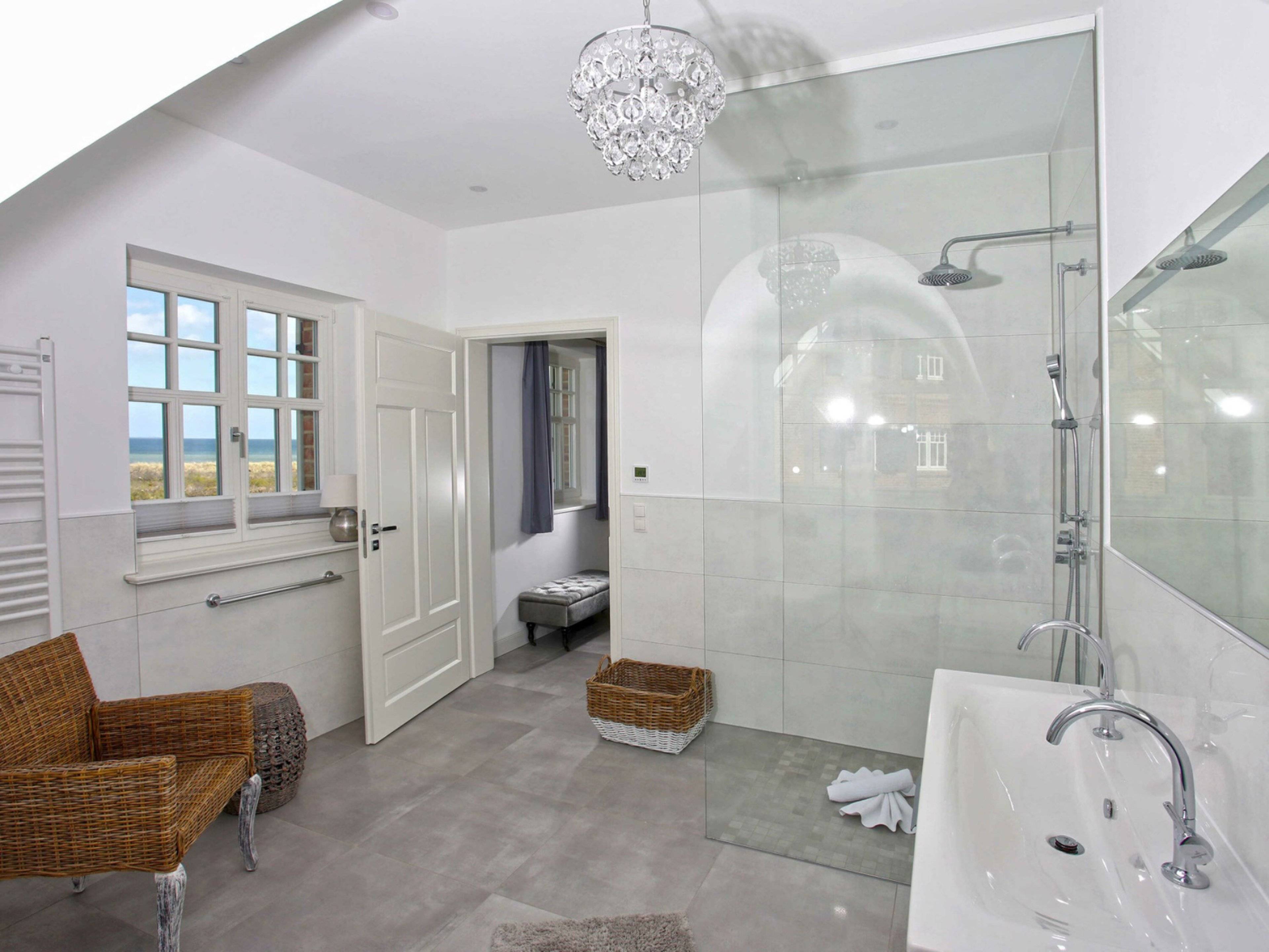 Das Ferienhaus Düne besticht durch einen großzügigen Wohn- Ess- und Kochbereich, der sich über das gesamte Erdgeschoss erstreckt. In dem edlen Badezimmer auf dieser Ebene lässt es sich in der Sauna im Chaletstil vorzüglich entspannen.