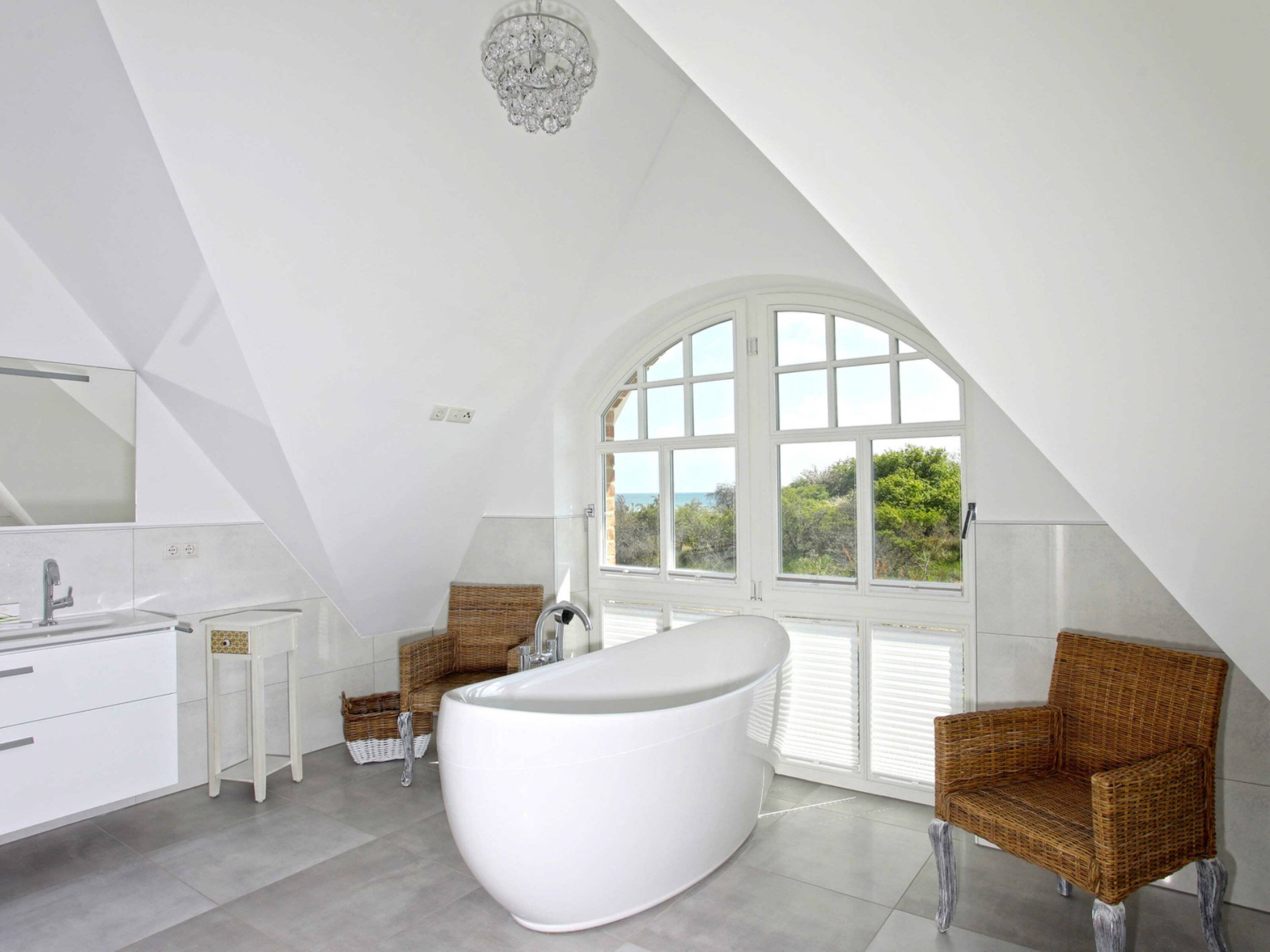 Im Obergeschoss beherbergt das etwa 220 qm große Ferienhaus drei Schlafzimmer, die allesamt mit einem Flachbildschirm versehen sind. Zwei moderne und helle Badezimmer – davon eines mit Badewanne und Dusche – garantieren ausreichend Privatsphäre.