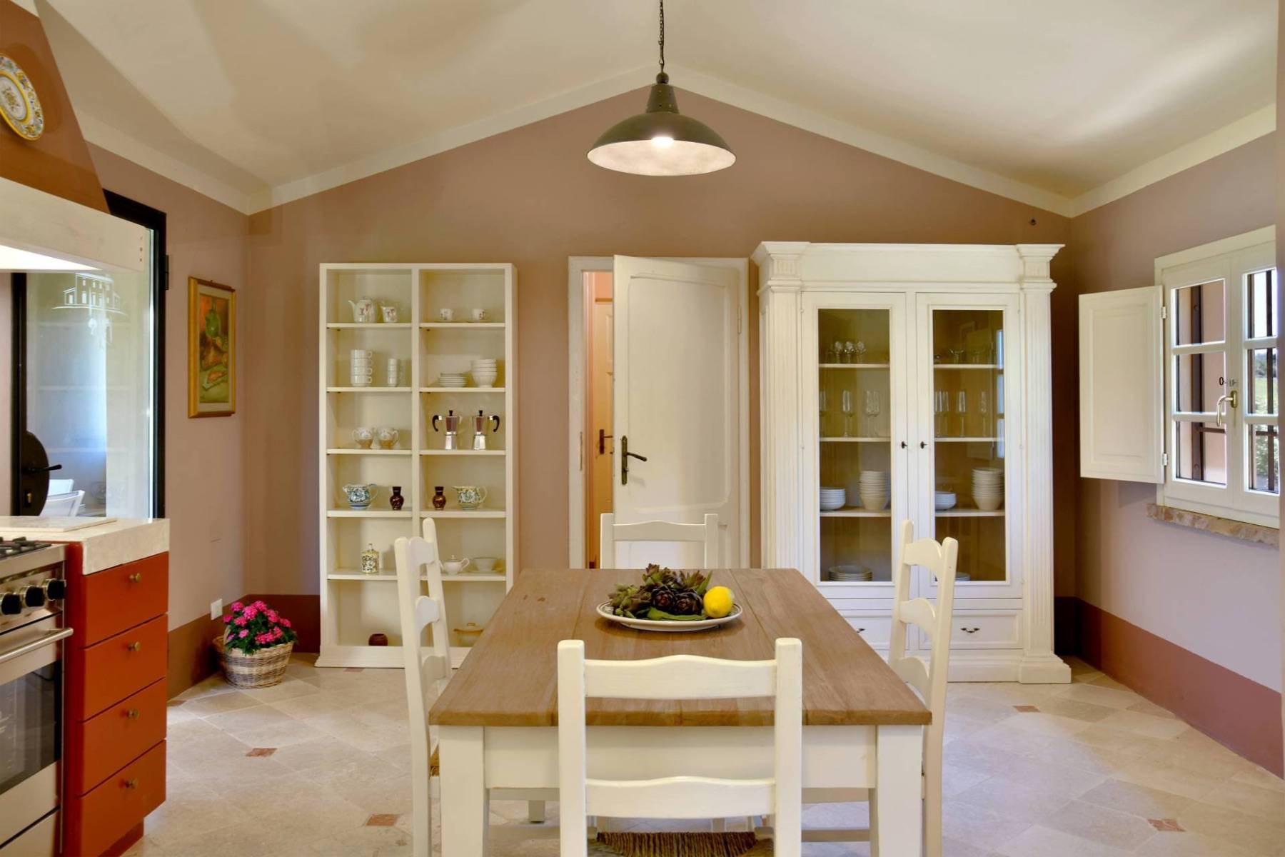 Ausgestattet ist der Podere mit einer Klimaanlage und einer Zentralheizung. Bei der Restauration wurde auf warmen Farben die eine gemütliche Wohnatmosphäre zaubern, Wert gelegt. Große Fenster durchfluten die Zimmer mit viel Licht.