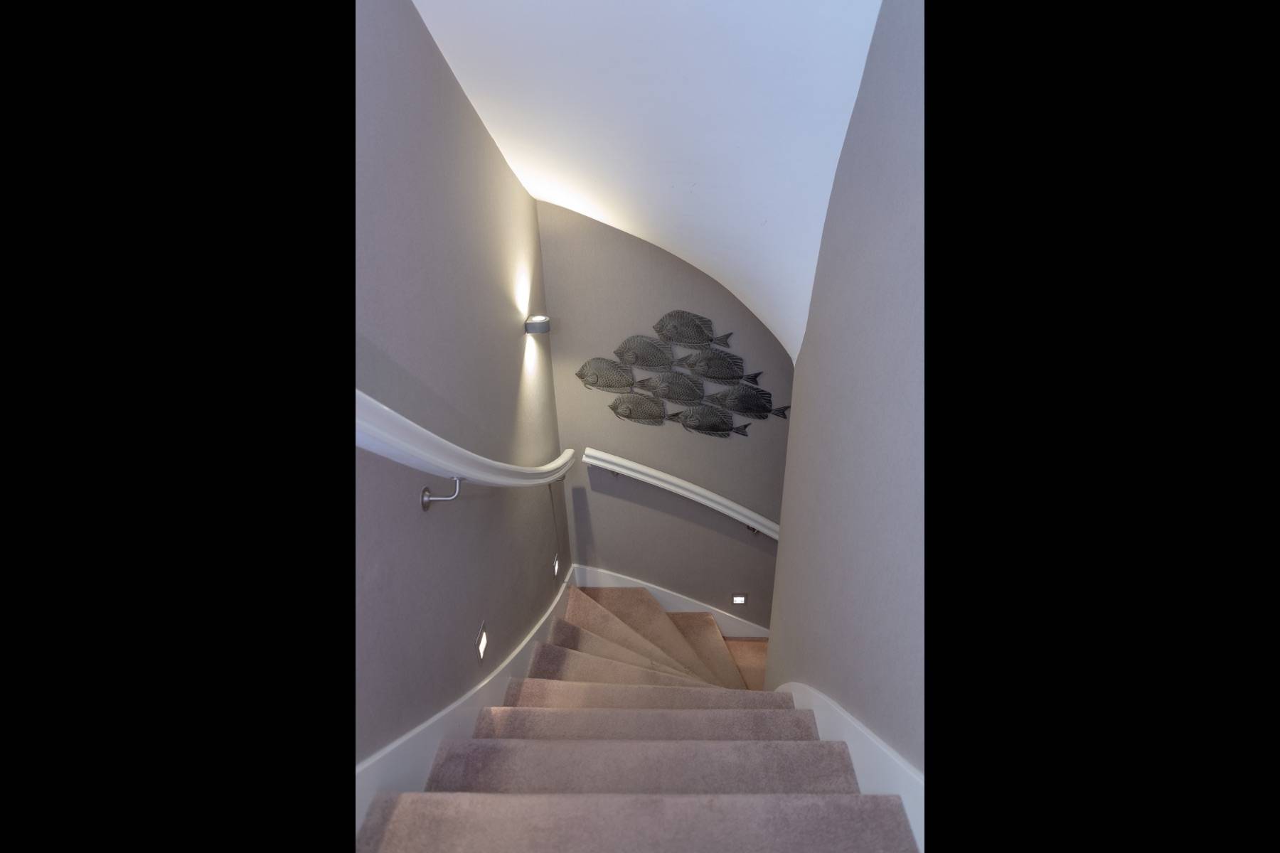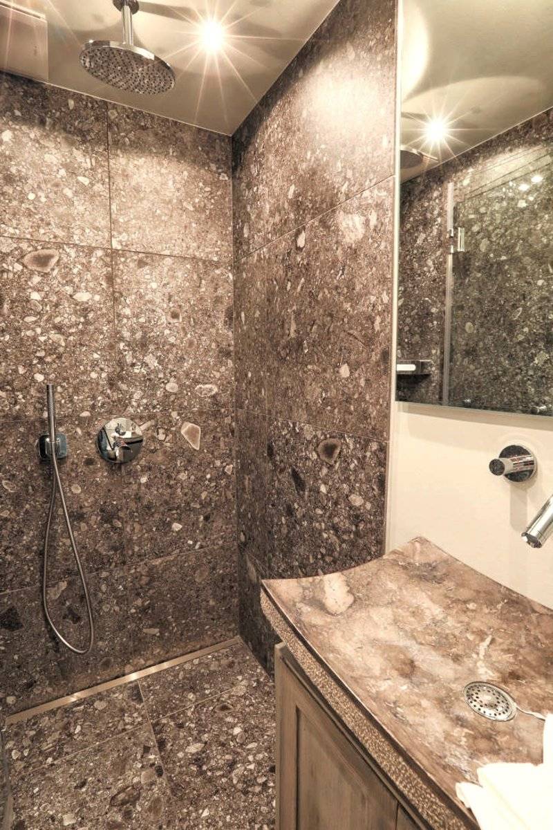 Zwei ansprechende und exklusive Schlafzimmer im Untergeschoß mit Luxus- Doppelbetten und je einem Flatscreen sind Garant für einen erholsamen Schlaf. Die beiden extravaganten Badezimmer mit Objekten des weltbekannten Designers Philippe Starck machen selbst aus einem Morgenmuffel ein Lila- Laune- Bär.