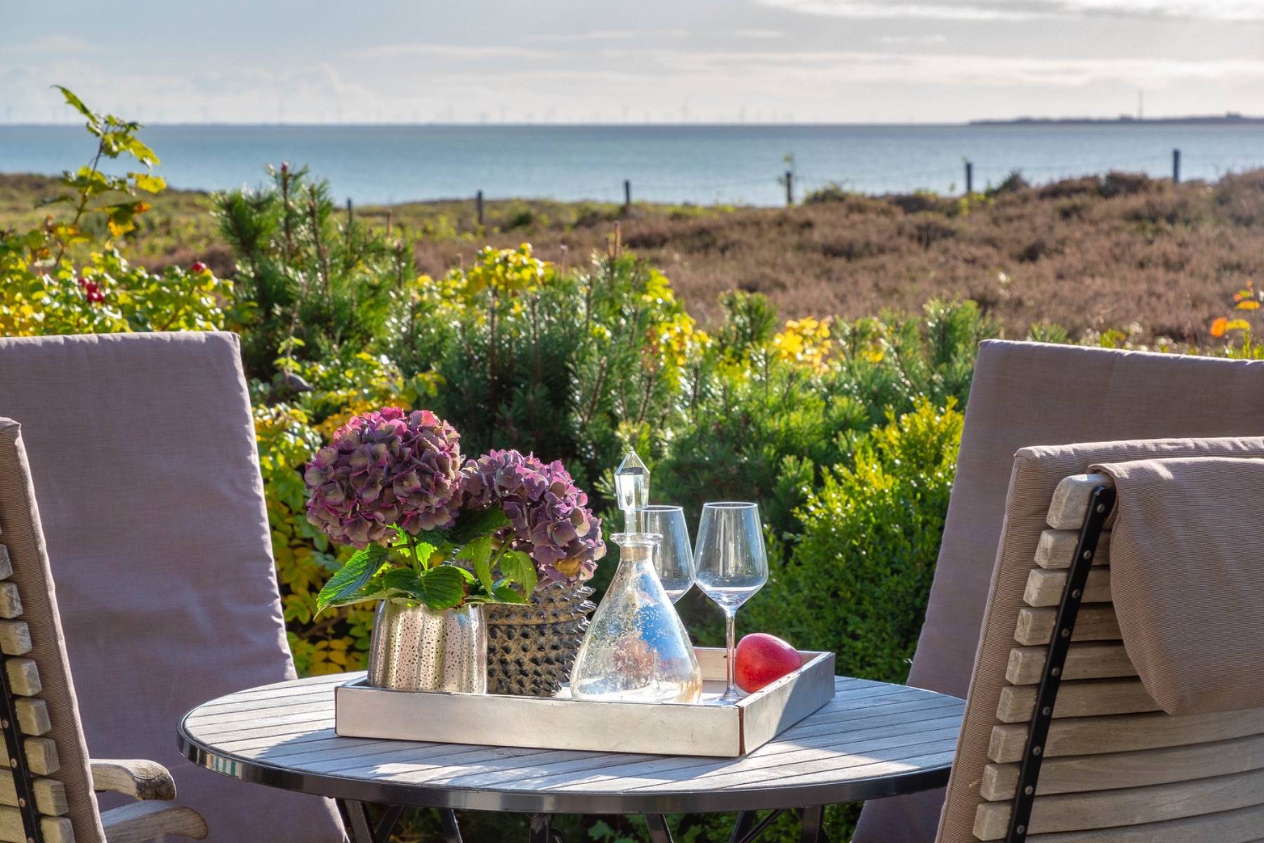 Gartenstühle Gartentisch Markise Meerblick Pkw- Stellplatz Strandkorb