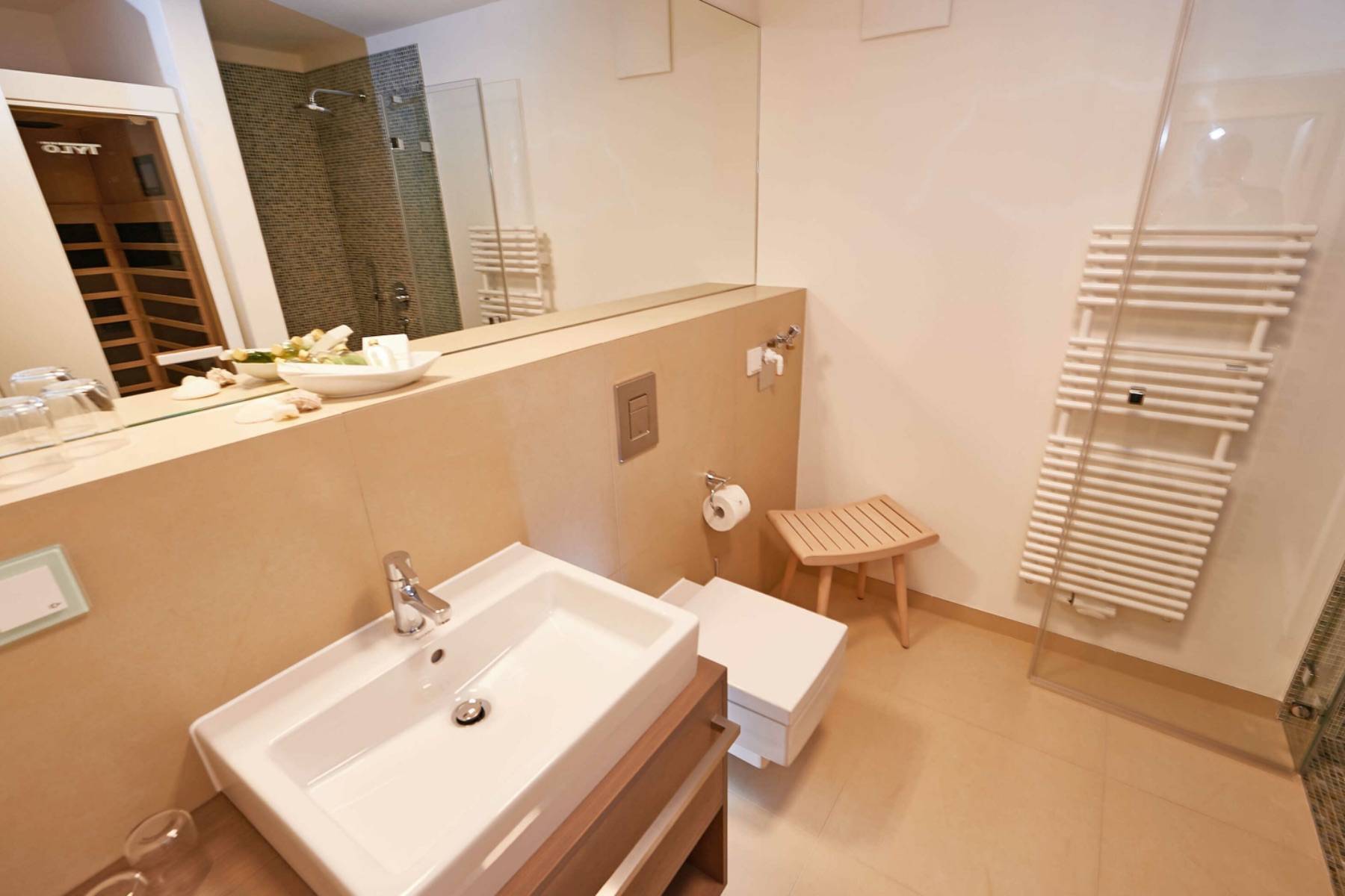 Haartrockner Handtuchheizkörper Heizung Infrarotkabine Kosmetikspiegel Spiegel Walk- In- Dusche Waschbecken WC