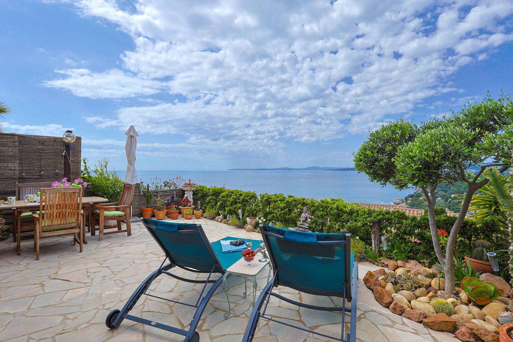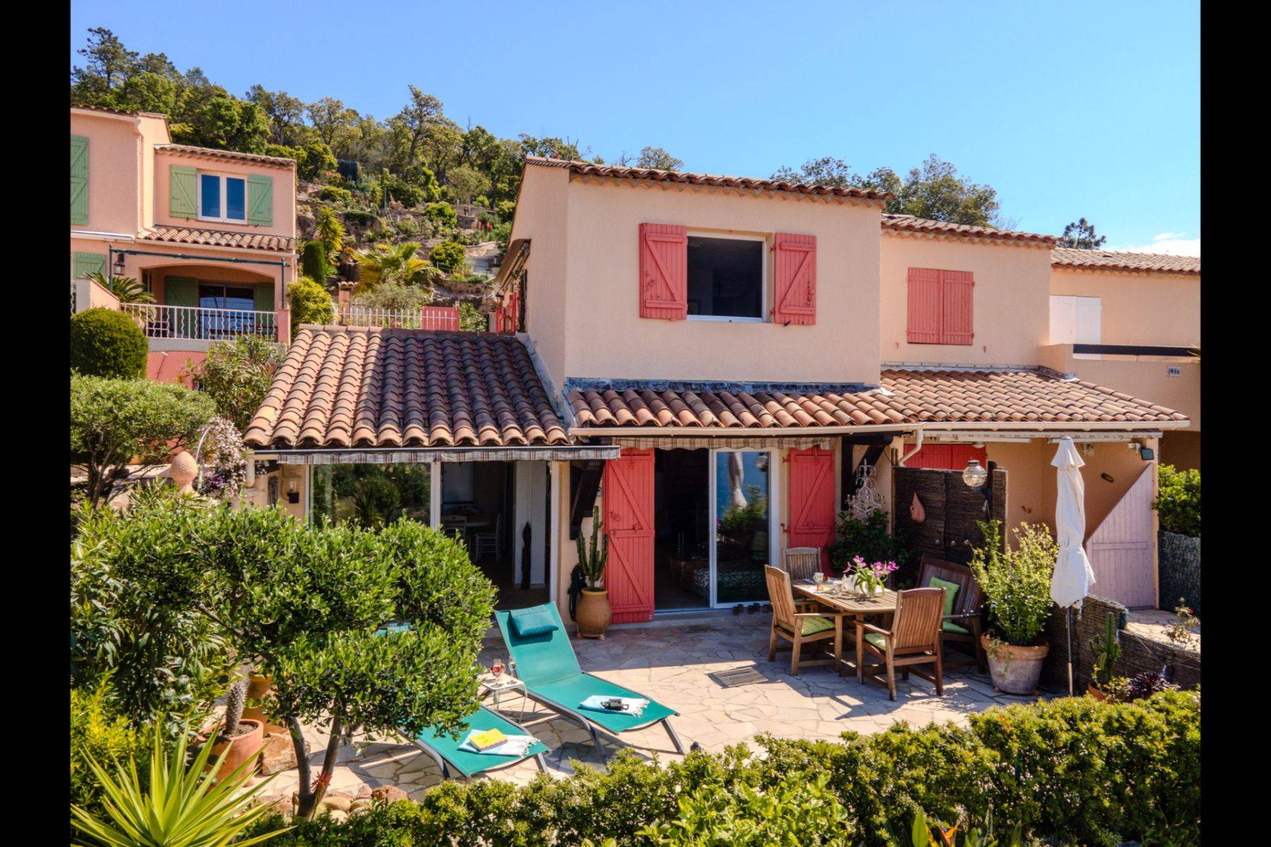 Ihre Unterkunft befindet sich in der obersten Häuserreihe der gepflegten Ferienanlage Boulouris Panorama und bietet Ihnen einen spektakulären Blick über das Mittelmeer. Genießen Sie unvergessliche Sonnenuntergänge direkt von Ihrer Terrasse aus – ein Highlight, das jeden Tag besonders macht.