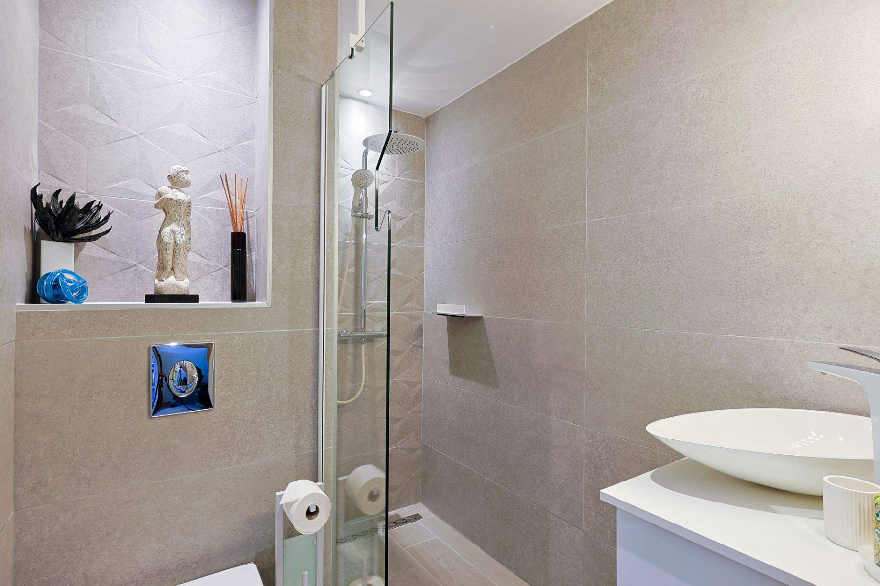 Im Obergeschoss erwarten Sie zwei gemütliche Schlafzimmer: Eines davon mit eigenem Duschbad en suite, das andere mit direktem Zugang zur Terrasse sowie zum ruhig gelegenen Garten hinter dem Haus.