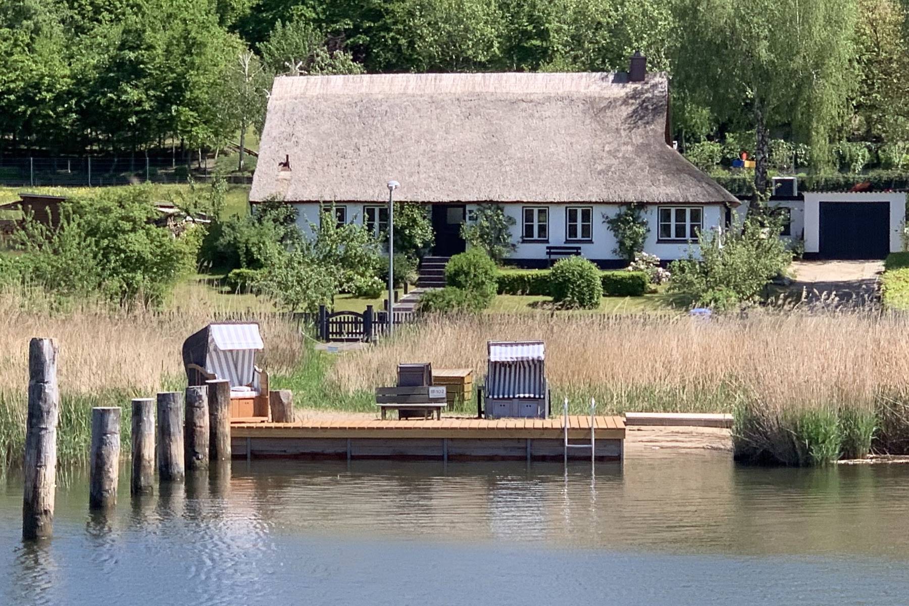 Wer Wasser mag, wird dieses Highlight lieben: vis à vis vom Haus steht Ihnen ein eigener Privatstrand zur Verfügung, der zum Entschleunigen beiträgt und nicht nur im Sommer positive Glücksmomente garantiert. Wer seinen Stoffwechsel ankurbeln und eine Runde im Wasser schwimmen möchte, gelangt über eine am Steg befestigte Leiter einfach in und aus dem Wasser.