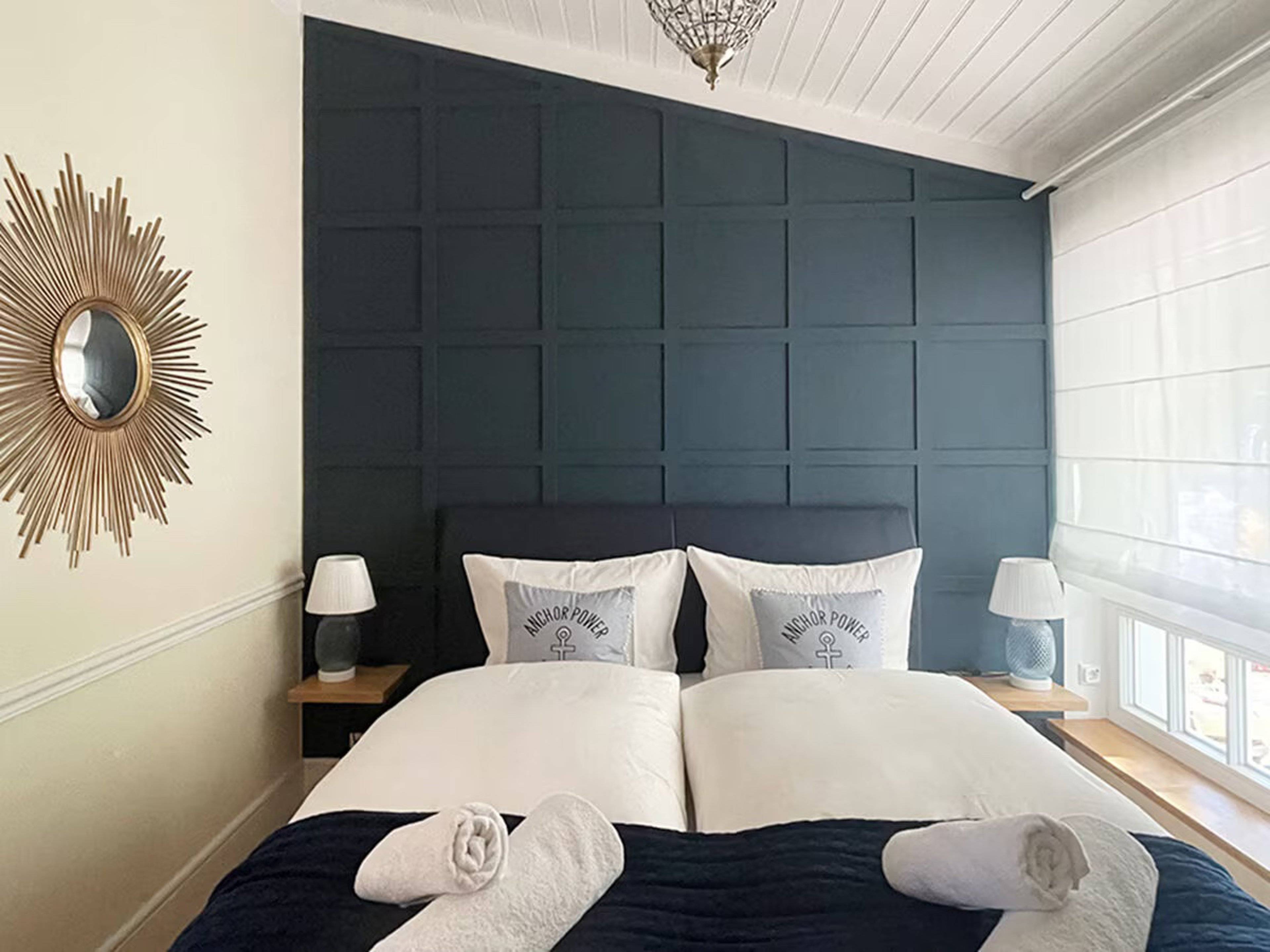 Sie schlafen in zwei separaten Schlafzimmern. Unsere Deluxe-Doppelbetten verfügen über eine Überlänge von 220 cm oder 210 cm, ideal für große Gäste. Alle Matratzen (H3/4) sind mit einem Topper ausgestattet.