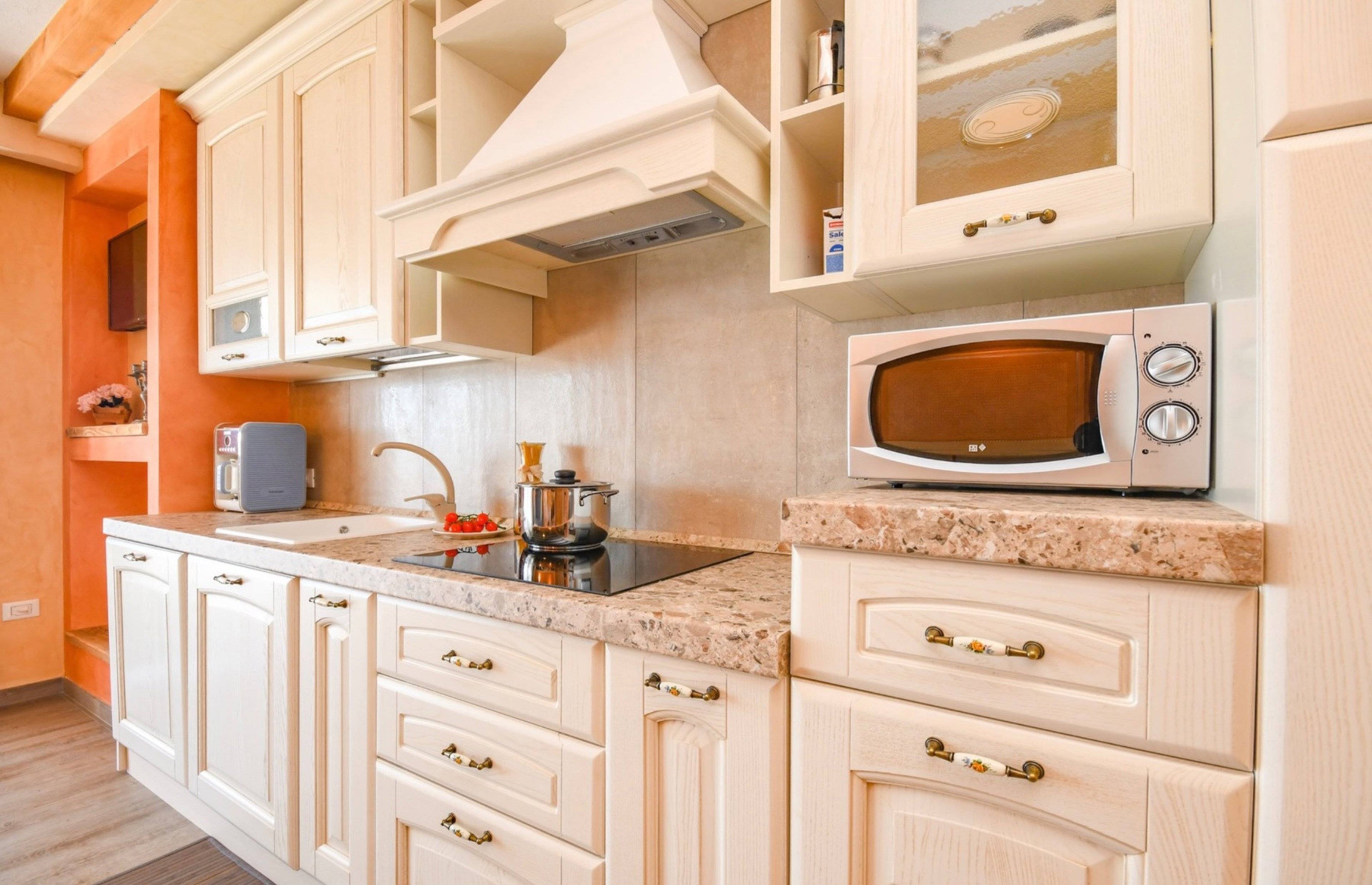 In der Wohnung Barone sind ein schönes Wohnzimmer mit gemütlichen Doppelschlafcouch und mit Zugang zur Südterrasse mit einer wunderbareren Panoramasicht auf den Gardasee, ein geräumiges Schlafzimmer mit Doppelbett, Schreibtisch und Kleiderschrank, eine und ein neues Tageslichtbad mit Dusche (90x100) und WC. Die vollständig ausgestattete Einbauküche hat ein Induktion-Kochfeld und eine Geschirrspülmaschine, sowie Kaffeemaschine, Wasserkocher, Mikrowelle und Toaster.