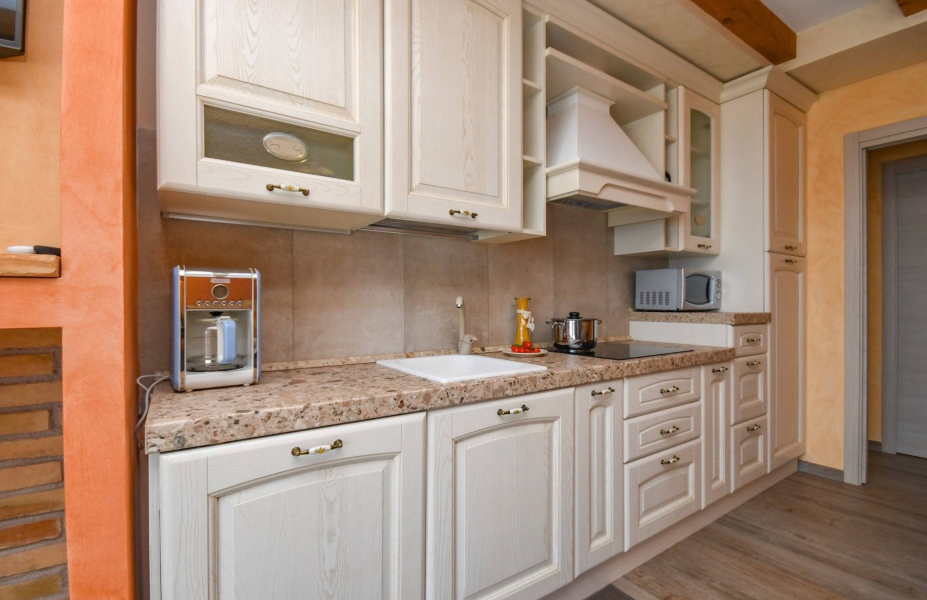 Hübsche, neu (im 2017 Eröffnung) und helle Ferienwohnung Barone, ruhig gelegen und trotzdem ziemlich zentral im Ortsteil Olzano in Tignale, nur 500 Meter weit vom Zentrum.
