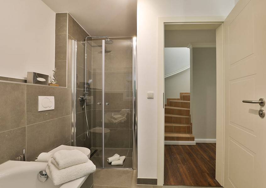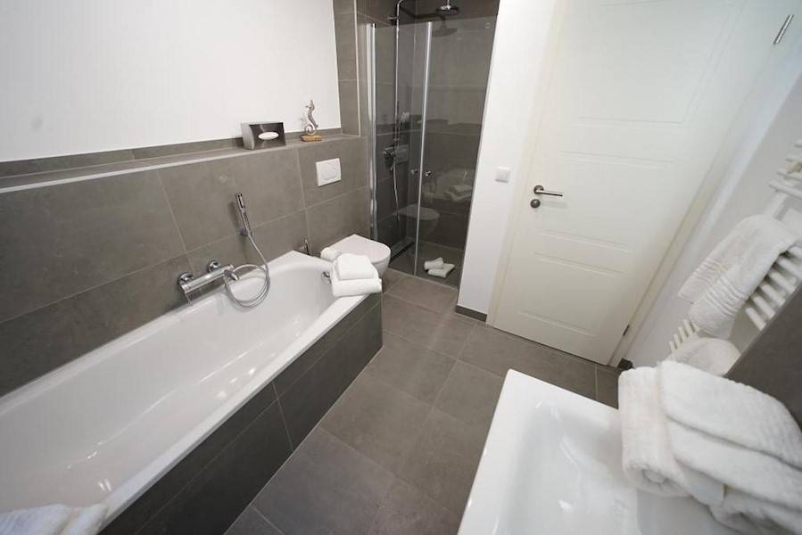 Badewanne Dusche Fenster Haartrockner Handtuchheizkörper Heizung Plissees Spiegel Waschbecken WC