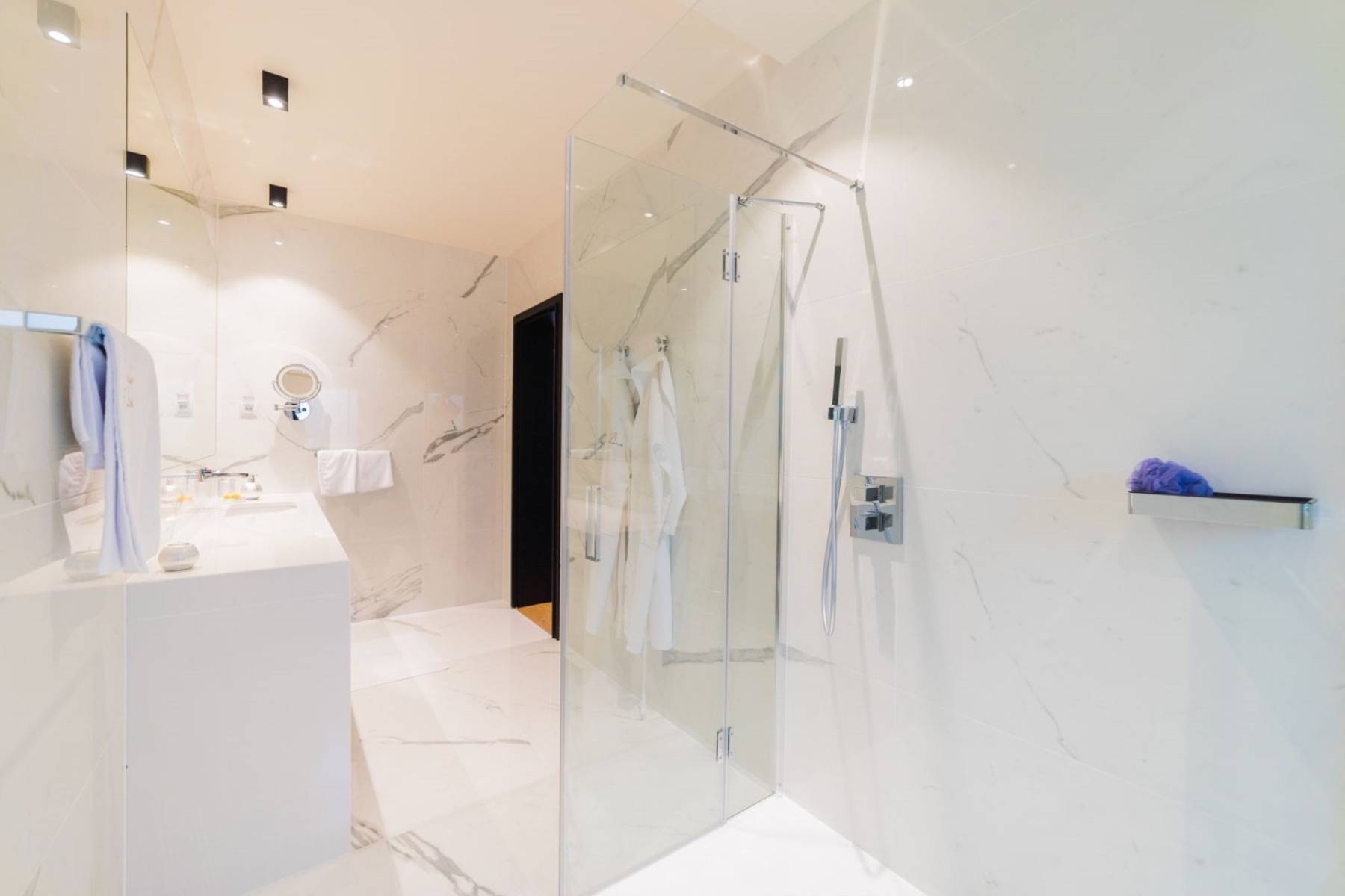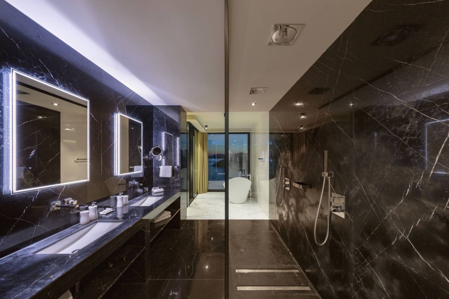 Wer das Glück hat und im großen und beheizten Infinitypool schwimmen und den spektakulären Meerblick genießen darf, lädt seine Glücksgefühle erheblich auf. Danach ist eine Tiefenentspannung in der Sauna eine wahre Wonne, aus der man weiterhin die Blicke über das Meer schweifen lassen kann.