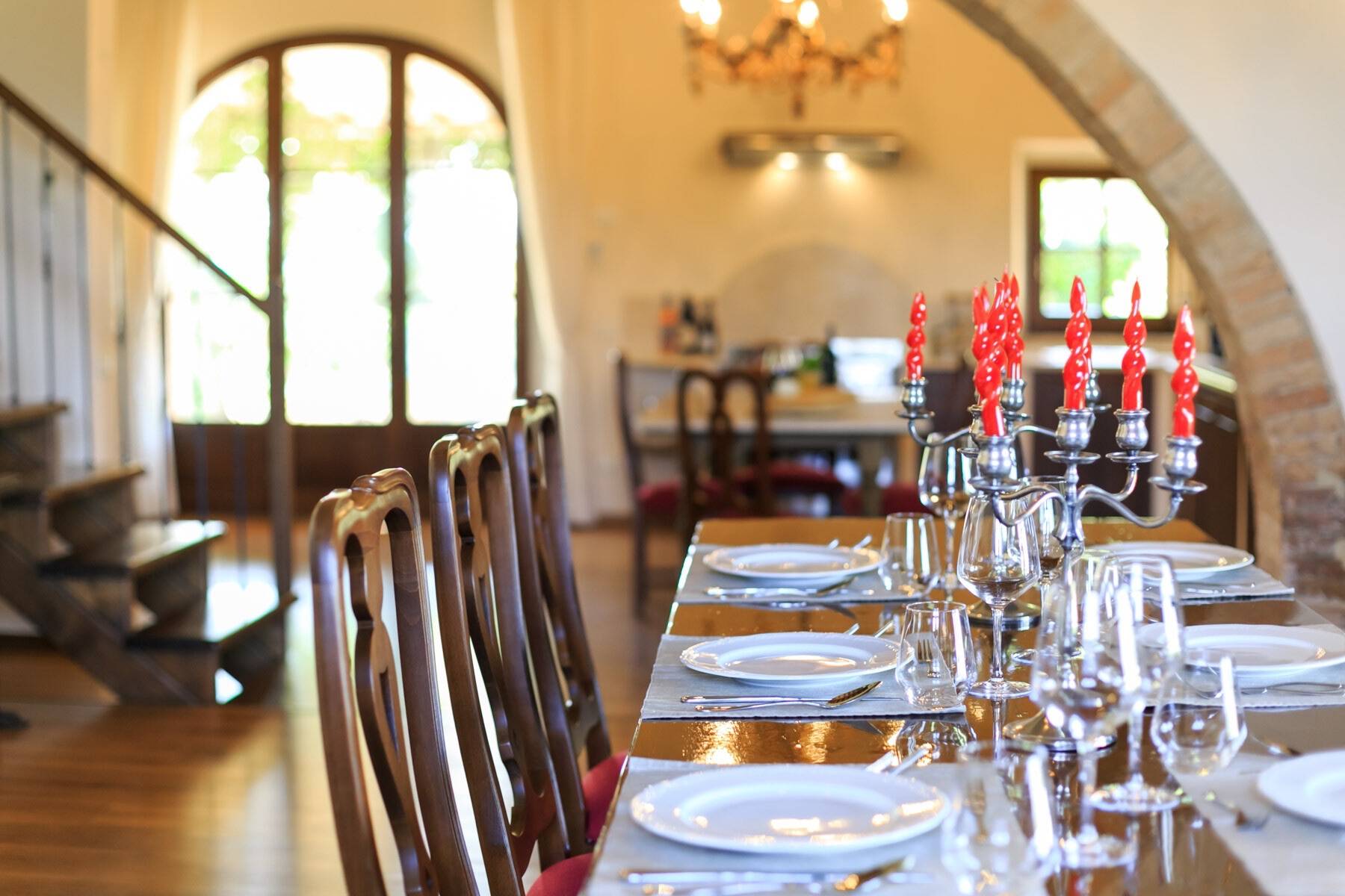 Die Villa Maccari bietet Platz für bis zu 8 Gäste in 4 eleganten Schlafzimmern, die allesamt ein eigenes Badezimmer beanspruchen dürfen. Damit man es auch an heißen Sommertagen gut im Haus aushalten kann, sind alle Zimmer mit Klimaanlage ausgestattet. Es gibt eine bestens ausgestattete Küche, in der auch ein Esstisch vorhanden ist. Zudem gibt es ein separates Esszimmer mit einem großen Kamin. Das Haus wurde renoviert in einer Kombination aus rustikaler Architektur und feinerer Ausstattung, die eine einladende Atmosphäre schafft.
