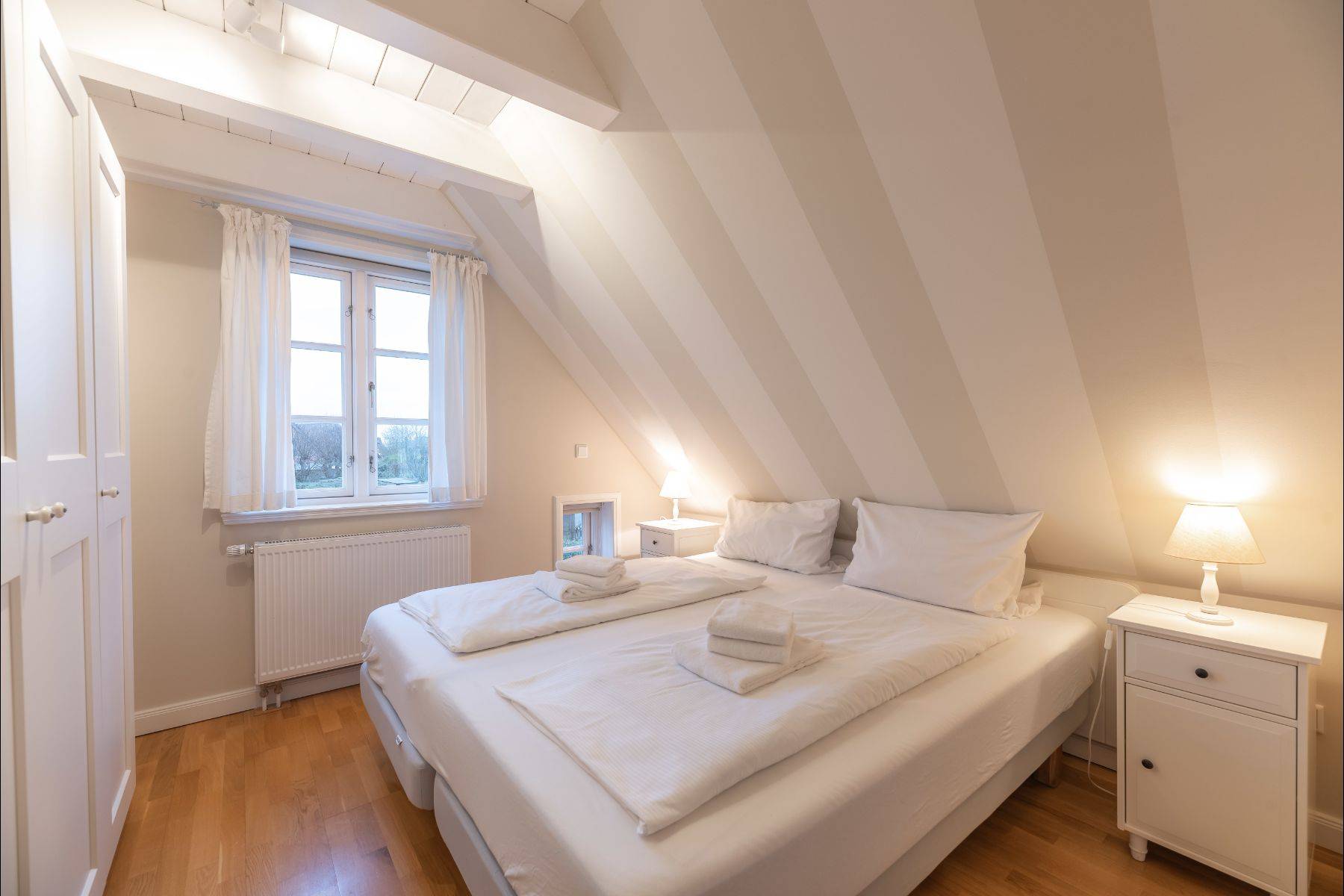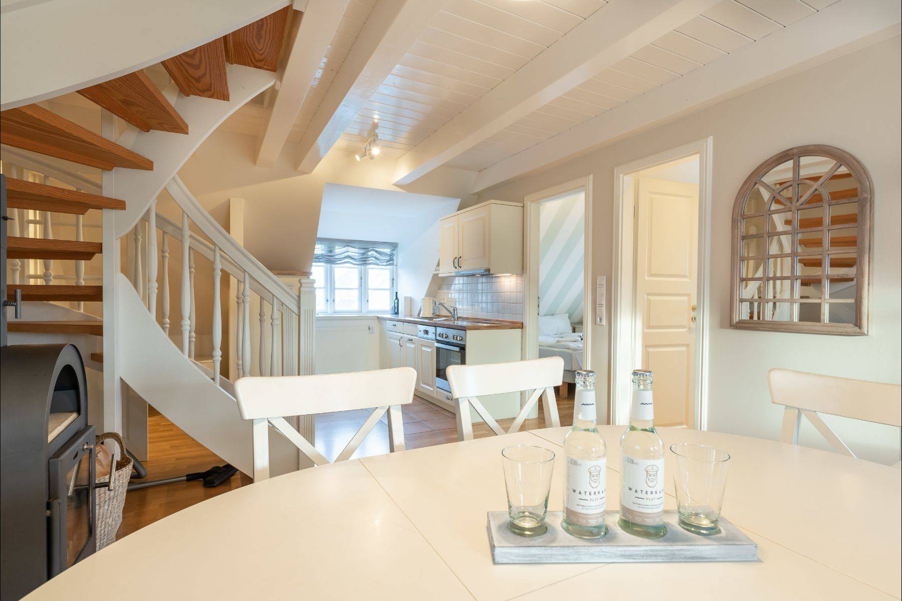 "Eine Wohnung, die einen umarmt" ist wohl die Beste Beschreibung eines Gastes, die den Charme dieser Wohnung beschreiben würde. Liebevoll wurde diese Wohnung 2022 von Grund auf saniert und verfeinert. Zarte beige Töne kombiniert mit hellen Landhausmöbeln verleihen ihr ein einzigartiges Wohlfühl-Ambiente. Neben einem großzügigen Eingangsbereich mit Garderobe verfügt über zwei Schlafzimmer mit Doppelbett und einem weiteren 140 cm breiten Bett, welches sich ideal für ein oder zwei Kinder eignet. Viele ausgefallene Details warten hier auf Sie, wie beispielsweise USB/ USB Mini Steckdosen an jedem Nachttisch, integriertem Radio im Badezimmer, hochwertigen original Tempur-Matratzen sowie einem 43 Zoll Fernseher. Im hauseigenen Hortensiengarten befinden sich viele schöne Sitzgelegenheiten, um die Sonnenstunden bestmöglich genießen zu können und gemütlich Café und Kuchen zu essen. Auf ihre Kinder wartet mit unserer tollen Boots- Sandkiste ein großes Abenteuer und viel Spaß.