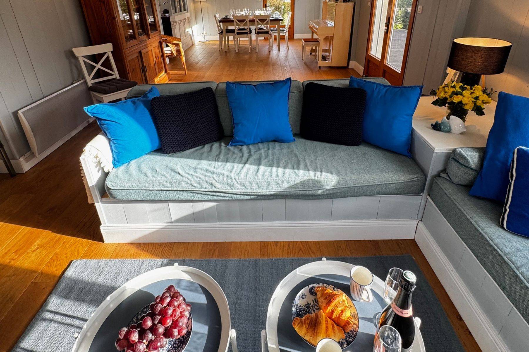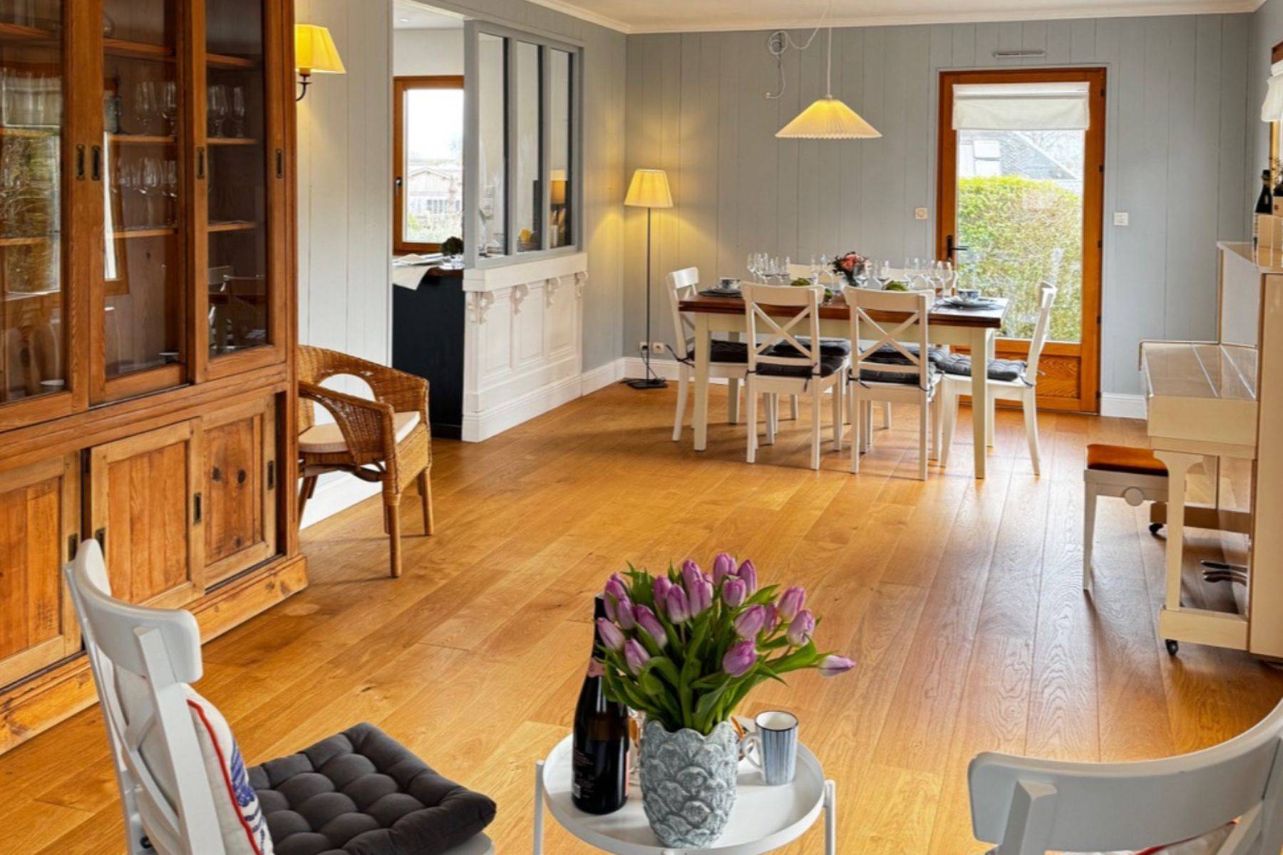 Ein Bilderbuch Strand Haus - mit modernem Ambiente; bequemem Platz für 8 Gäste in 4 Zimmer und 4 großen Queen-Size Betten, einen herrlichen Blick in den grünen Garten, die Sonnenterrasse lädt zum Verweilen gen Süden ein und das schönste ....in ca. 250 Meter sind Sie am Meer und an den Stränden. Sie sind hier richtig mit Ihrem Hund und mit Ihrer Familie oder mit Freunden - die Küche hat einen kleinen Barbereich ist etwas vom Wohn-Essraum abgetrennt und ein Gemütliches Sofa lädt zum Chillen vor dem Kaminofen ein. Sie haben natürlich Internet per WLAN kostenlos - und Ihre Betten sind bei Ihrer Ankunft bezogen. Sie benutzen Ihr Haus ganz alleine und niemand stört die Urlaubsruhe - Parkplätze sind auf dem Grundstück. Da kan man nur Schöne Ferien wünschen.
