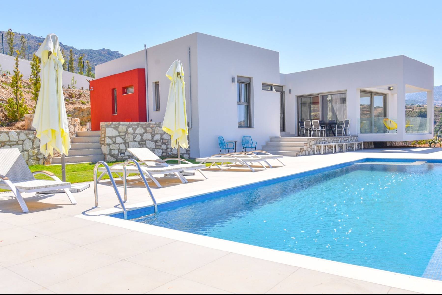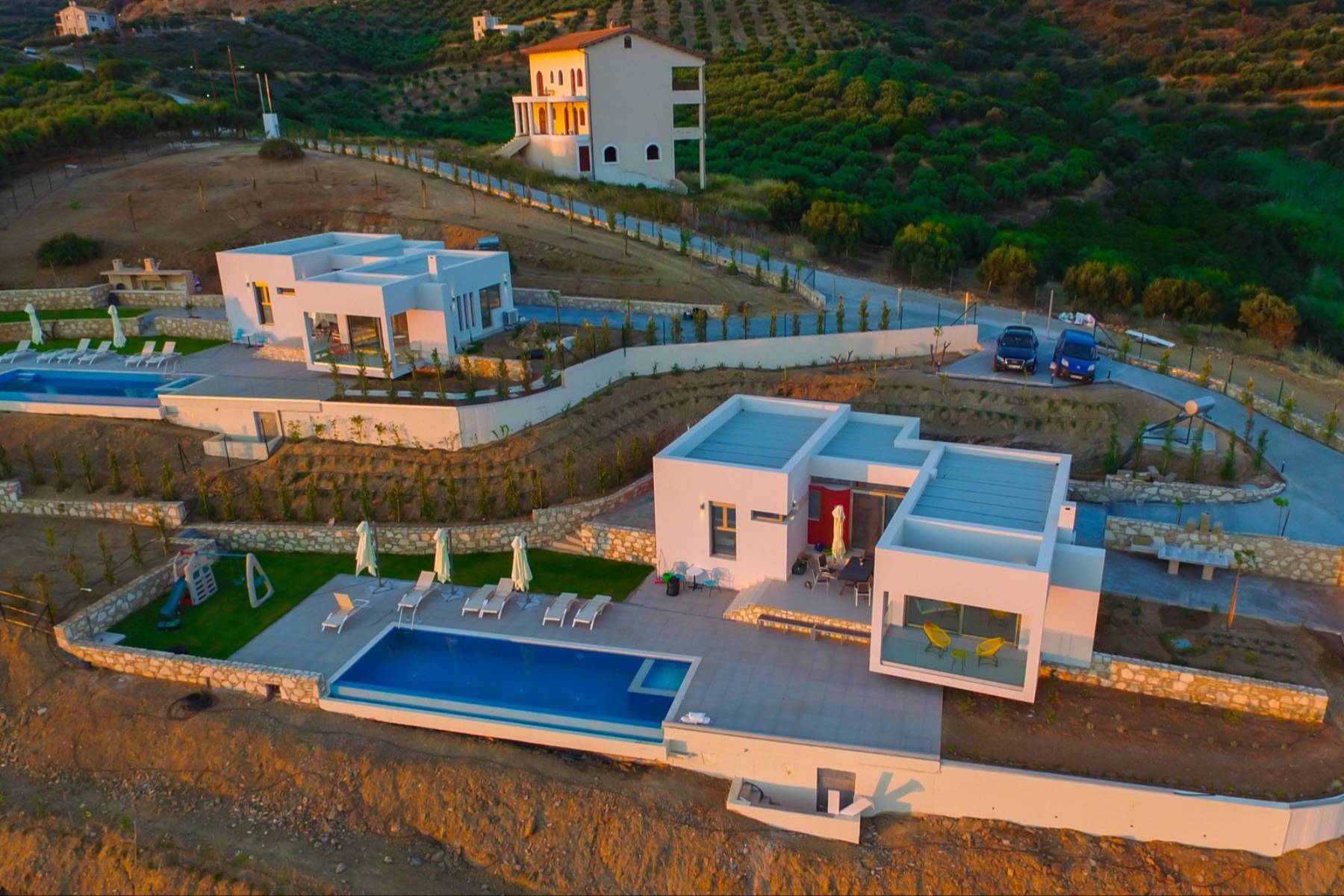 Vlla Antheklia ist Teil eines etwa 5 Hektar grossen Guts, auf dem sich zwei Villen befinden, wobei jede Villa privat liegt und auch ihren eigenen Pool hat. Die Villa Antheklia hat insgesamt drei Schlafzimmer, von denen zwei mit je einem Doppelbett ausgestattet ist und eines mit zwei Einzelbetten. Alle Schlafzimmer haben ein eigenes Badezimmer ensuite. Die Ausstattung der Villa ist modern und elegant und in allen Schlaf- und Wohnzimmern mit einer Klimaanlage versehen. Es gibt grosse Fensterelemente, um die schöne mediterrane Atmosphäre voll geniessen zu können. Die Küche der Villa ist bestens ausgestattet und die Villa verfügt über Wifi-Internet.