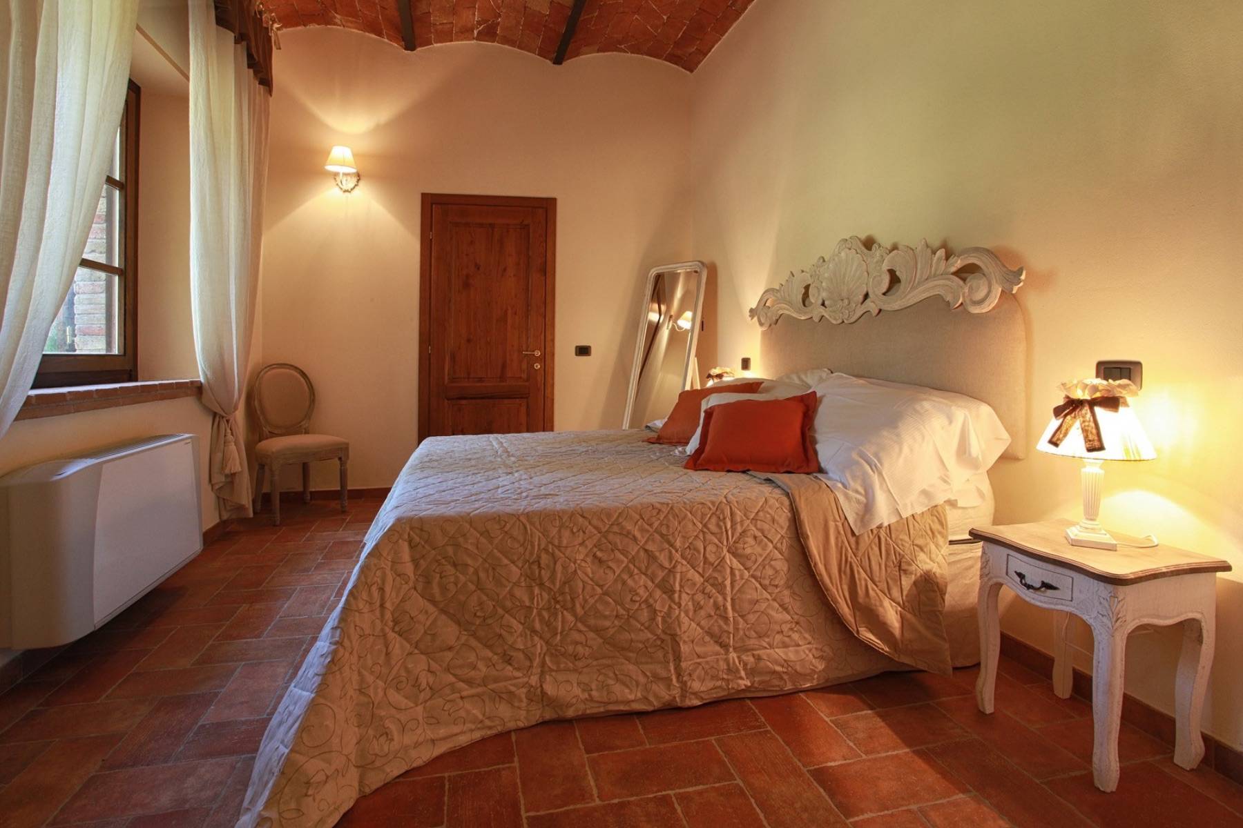 Das Schlafzimmer mit Doppelbett im Erdgeschoss ist aufgrund eines eigenen Zugangs von außen auch für Personen mit Handicap geeignet. Zudem ist diesem Schlafzimmer ein eigenes Badezimmer mit einer Dusche zugeordnet. Ein weiteres Schlafzimmer mit Bad en suite und eigenem Eingang befindet sich ebenso im Erdgeschoss.