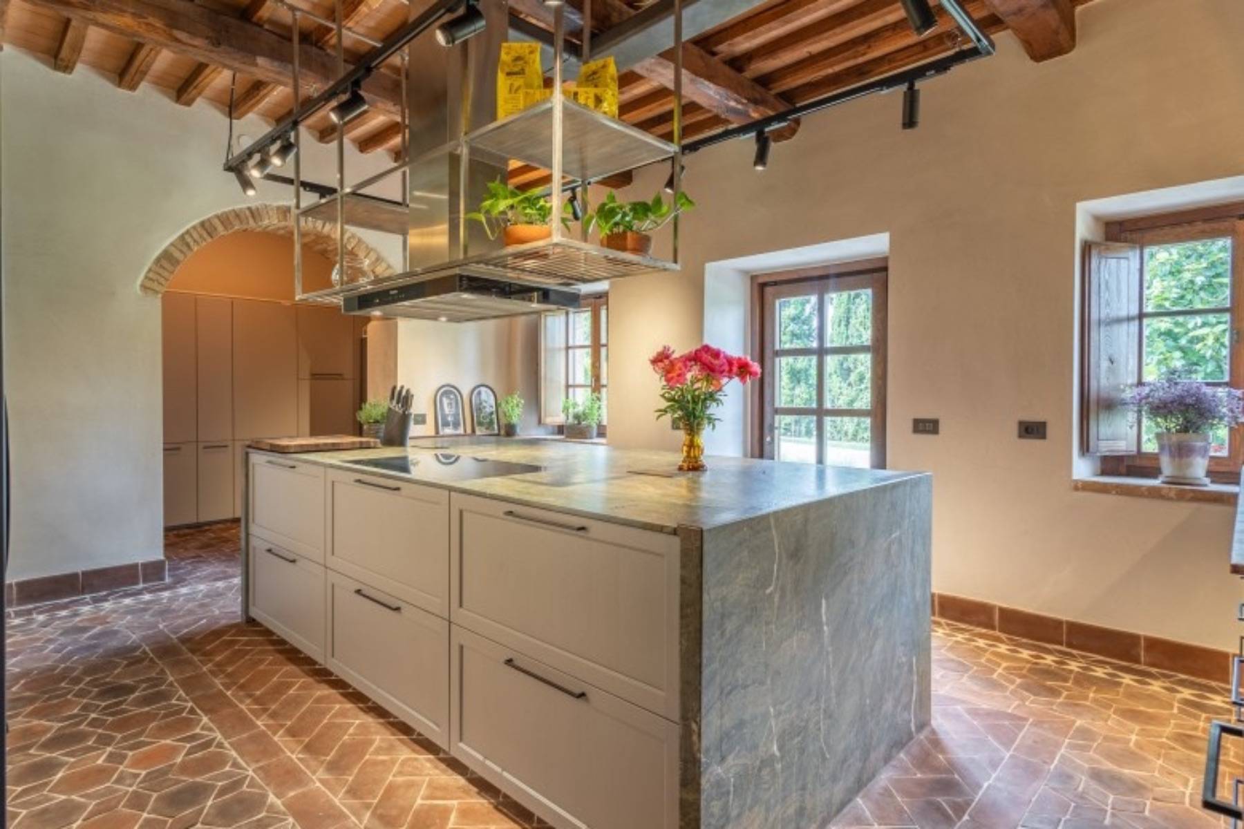 Dieser über 300 Jahre alte Palazzo wurde aufwendig und sorgfältig restauriert. Das Ergebnis ist die Luxus Villa Cardinale in Riparbella, die in einer Alleinlage in der hügeligen Landschaft der Toskana thront.