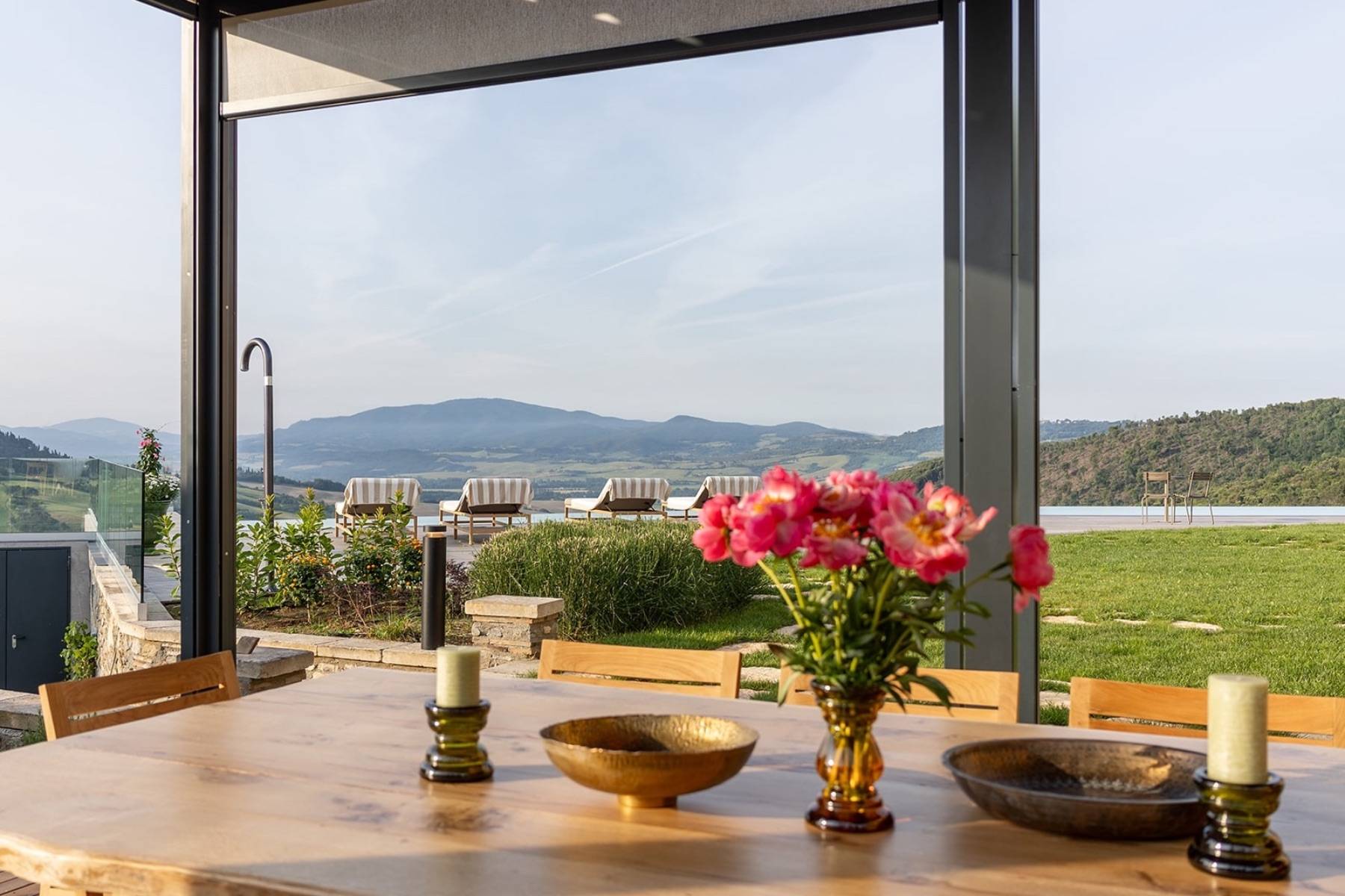 Die Villa besticht durch die Liebe zum Detail, die hochwertige Ausstattung sowie die ausserordentlich schöne Lage in typische Toskanischer Hügellandschaft und die noch gute Nähe zur Küste auf einem 18 Hektar grossen Grundstück mit Wald und Wein.